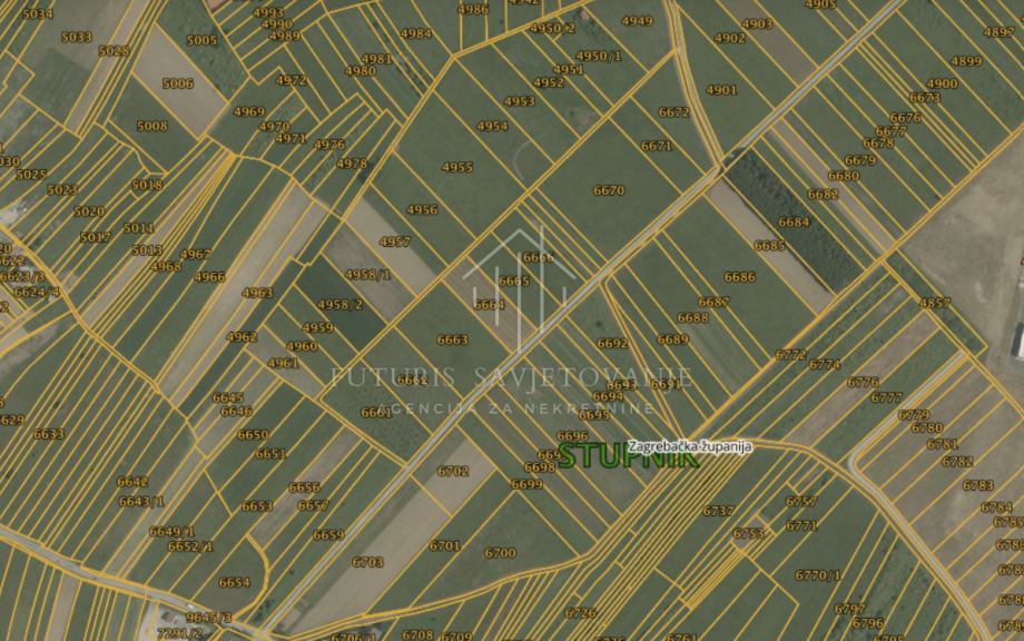 Na prodaju je atraktivno građevinsko zemljište površine 7869 m², smješteno u Donjem Stupniku, unutar gospodarske namjene s pretežito industrijskom zonom. Zemljište se sastoji od dvije katastarske čestice – 5069 m² i 2800 m², a zajedno čine pravilnu pravokutnu parcelu dimenzija 42 m x 120 m, što omogućuje maksimalnu iskoristivost prostora i jednostavno planiranje budućih objekata.