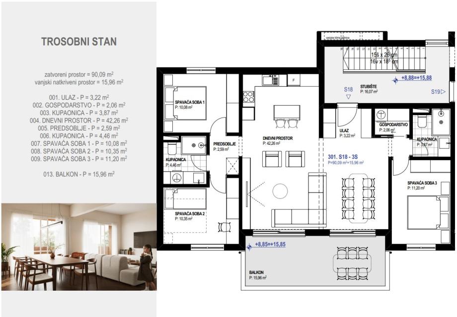 Stan se nalazi na trećem katu objekta i sastoji se od