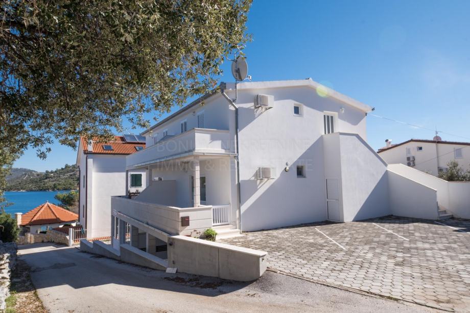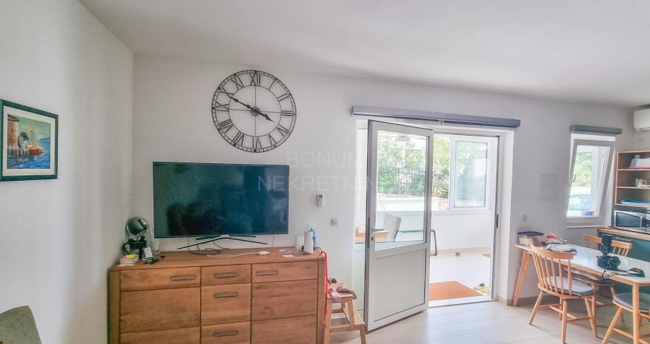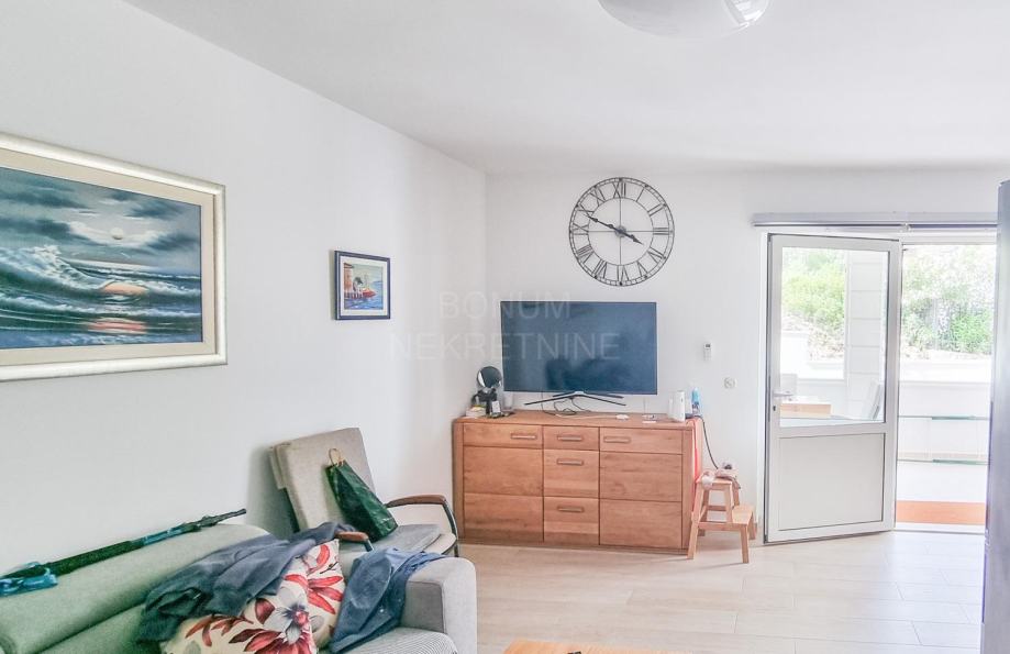 Prodaje se potpuno namješteni apartman P1 u prizemlju stambene zgrade izgrađene 2007. godine, smještene svega 40 metara od mora u Rogoznici.
