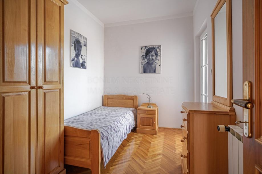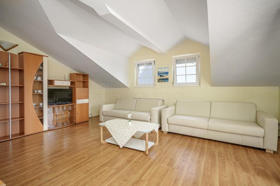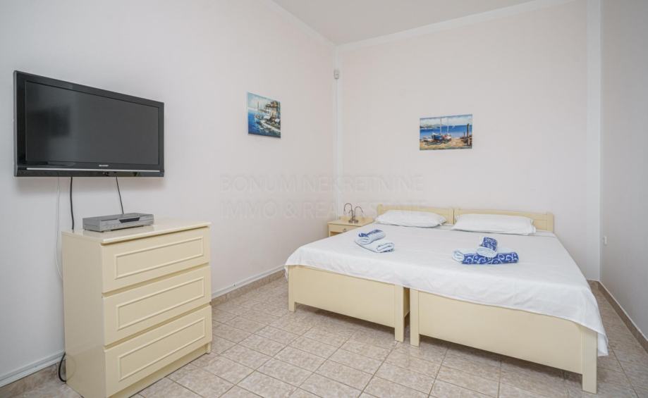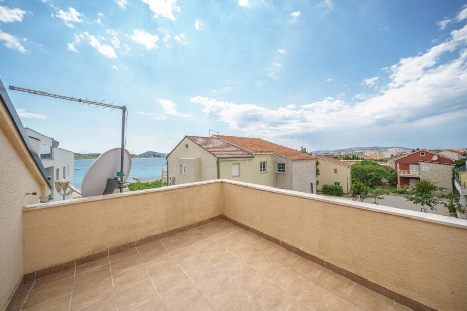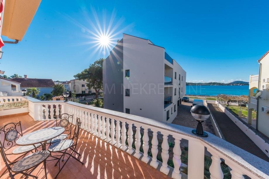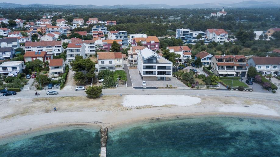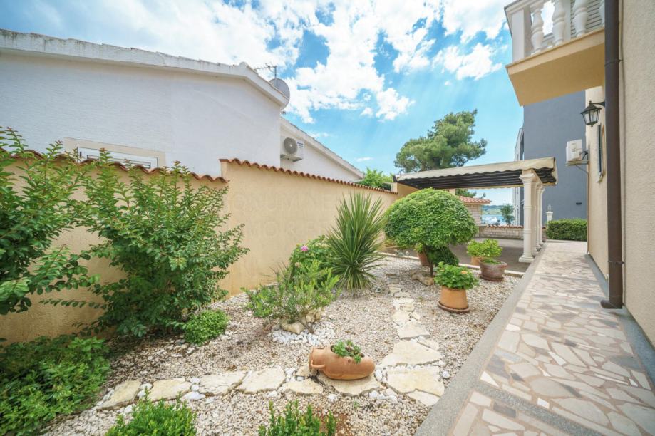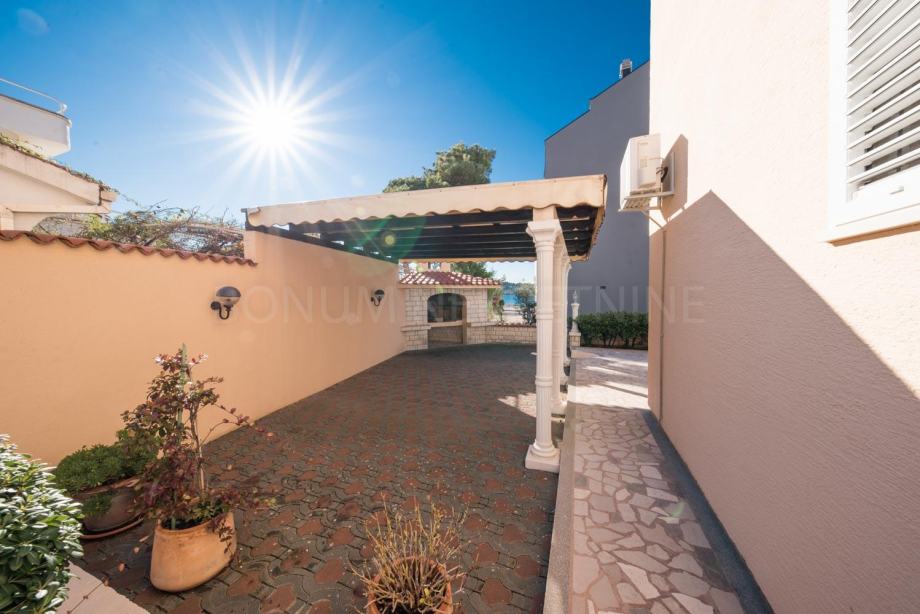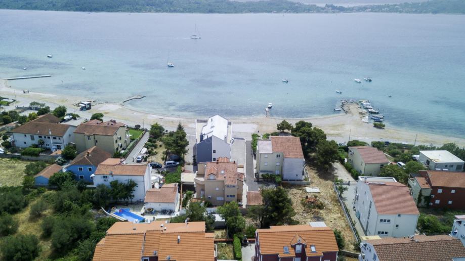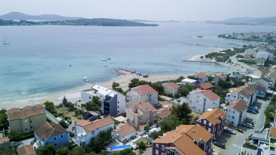 Prodaje se apartmanska kuća u neposrednoj blizini mora i prekrasne plaže na Srimi- Vodice. Kuća je samostojeća, apartmanskog je tipa. Sastoji se od prizemlja, kata i potkrovlja. U prizemlju su smještena tri studio apartmana. Svaki ima 30 m2. Na katu se nalazi prostran apartman od 90 m2( tri spavaće sobe, kupaona, tolaet, kuhinja, blagovaona i dnevni boravak u jednoj cjelini te tri balkona). U potkrovlju se nalazi još jedan apartman- 68 m2 ( spavaća soba, kuhinja, blagovaona, dnevni boravak, kupaona, toalet te dvije terase s lijepim pogledom na more. Dvorište je uređeno, te se u njemu još nalazi i praonica, garaža od 35 m2, vanjska kuhinja te je iza kuće spremište u kojem je smještena kotlovnica. Kuća se nalazi u drugom redu do mora, udaljena je svega 50 m do lijepe i uređene plaže. Investicijska nekretnina!