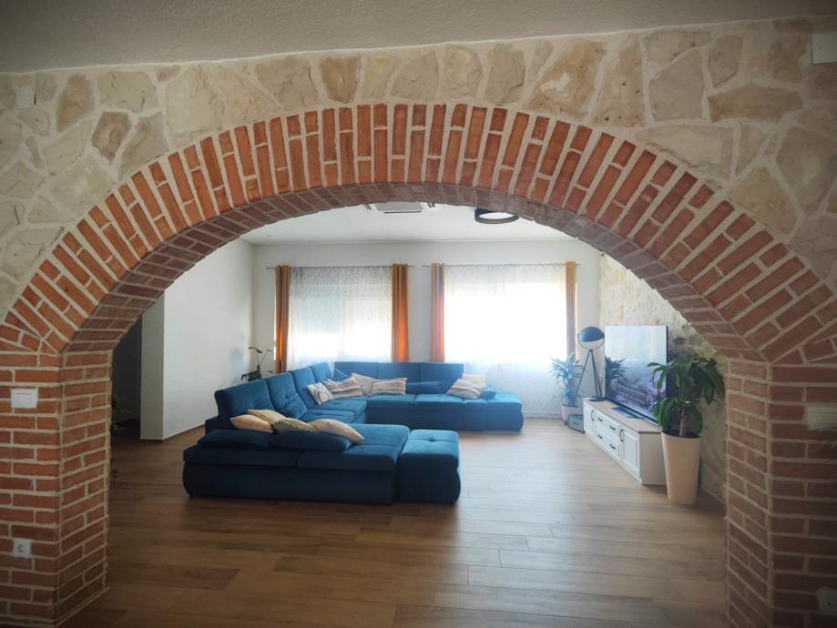 Ova jedinstvena nekretnina nalazi se na prostranoj parceli od 5487 m², okruženoj maslinama, a nudi sve što vam je potrebno za ugodan život.