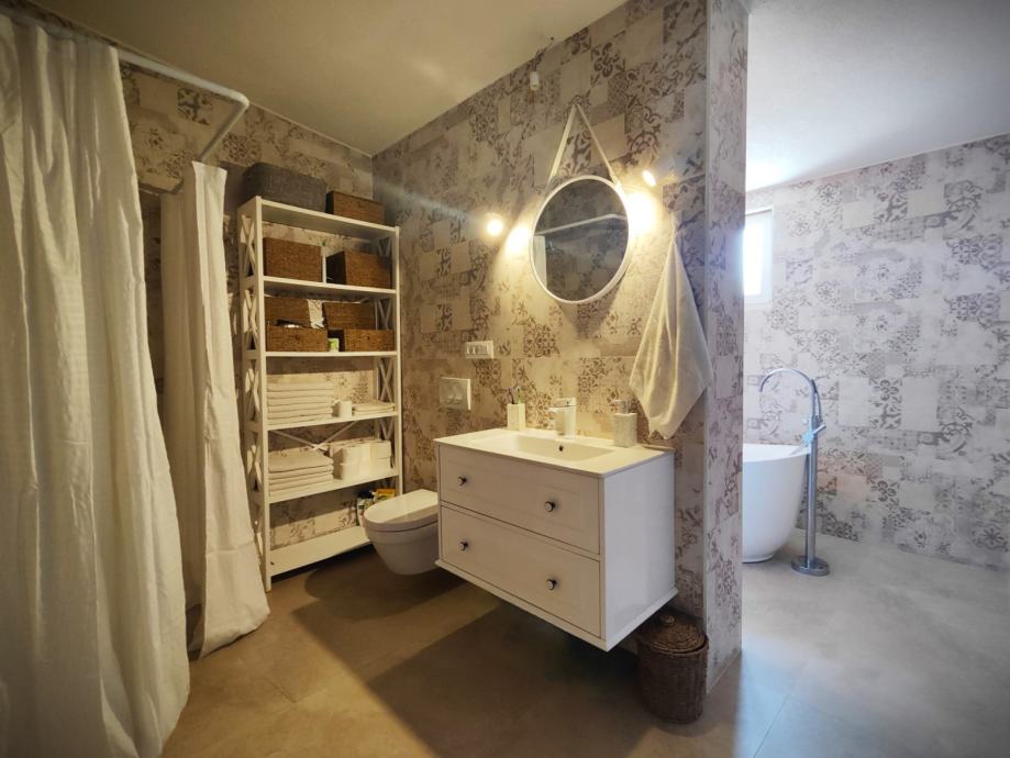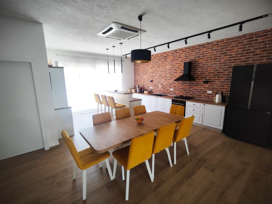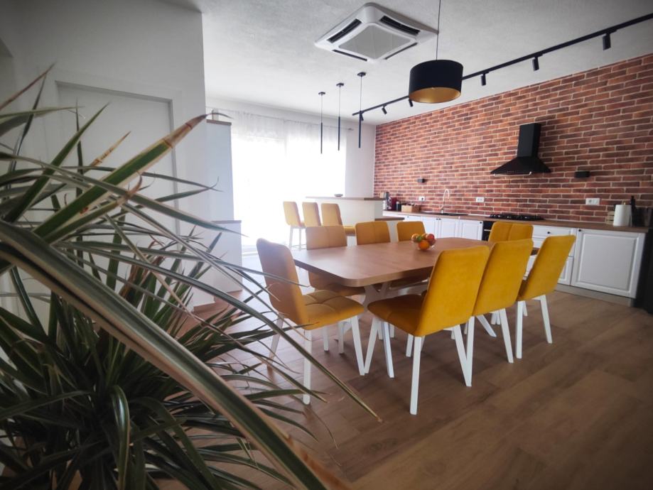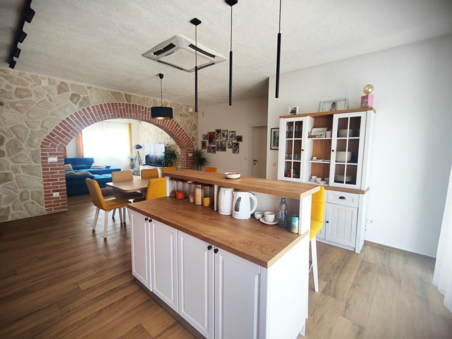 Unutrašnjost je pažljivo uređena, s ugrađenim stropnim klimama 360˙, dizalicama topline, i podnim grijanjem koje prolazi kroz cijelu kuću, uključujući i ispod namještaja, omogućujući vam da lako prilagodite raspored prema vlastitim željama. Topla voda se također osigurava dizalicom topline, s 250-litarskim bojlerom.