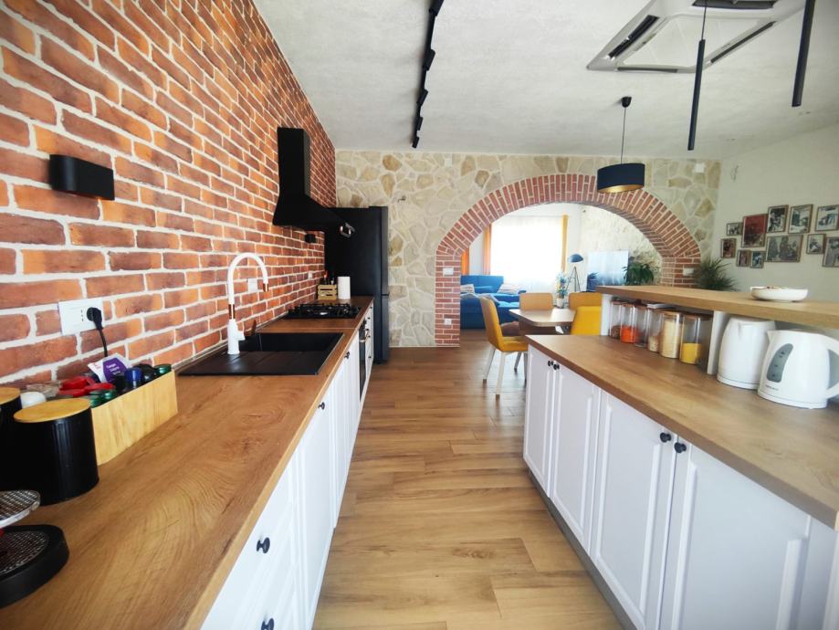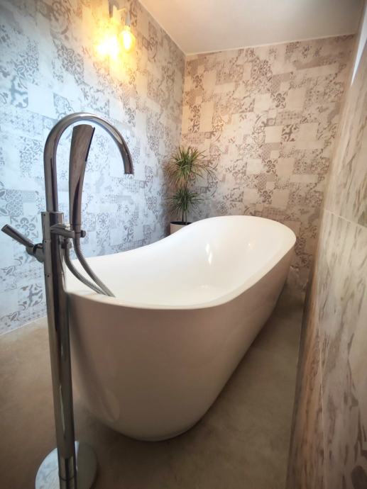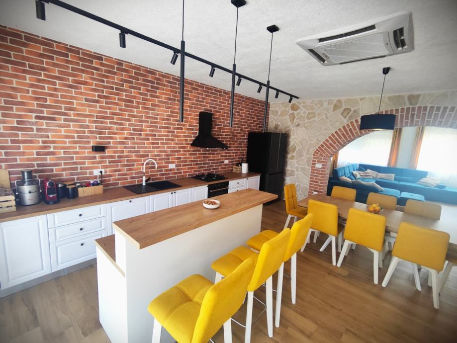 Kuća je spojena na gradsku kanalizaciju i prodaje se potpuno namještena, s vrhunskim uređajima renomiranih marki poput Gorenje, Samsung i Miele. Kuhanje se odvija na plin, dok dva Gree klima uređaja osiguravaju optimalnu temperaturu u svakoj prostoriji. Svaka prostorija ima svoj termostat, pa možete pojedinačno regulirati putem sustava podnog grijanja - i grijanje i hlađenje prema potrebi. Podovi su obloženi kvalitetnim keramičkim pločicama, a zidovi imaju 8 cm toplinske izolacije, dok je krov izoliran s 10 cm.