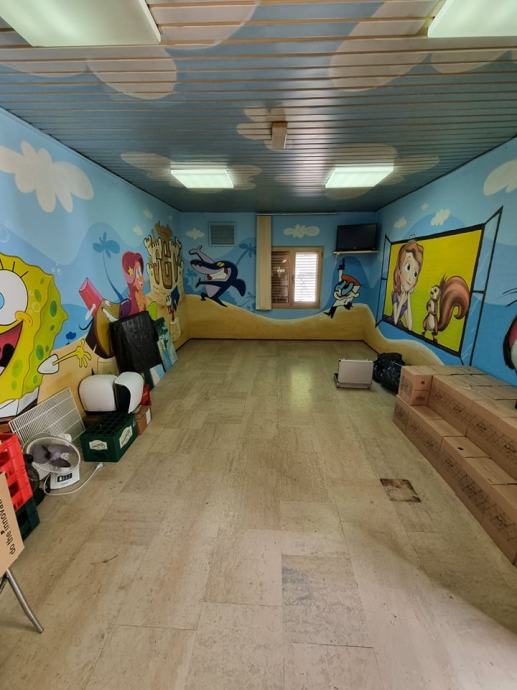 Sa prostorom dolazi i još jedan dio zgrade koji je u pripremi za dječju igraonicu , posebni šank te veliko spremište i ured.