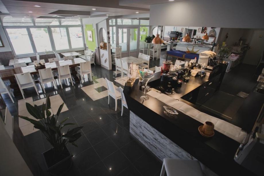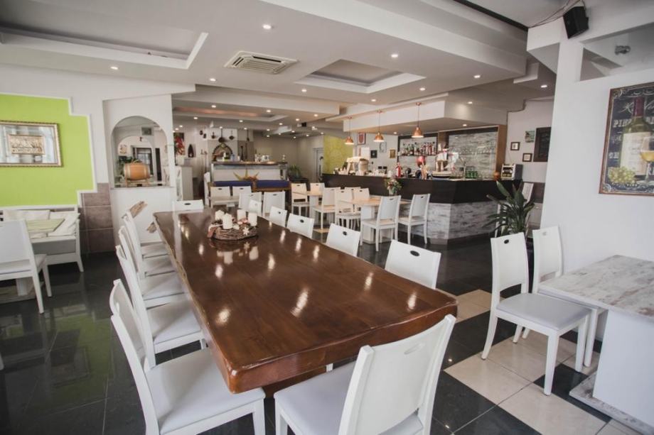 Restoran ima oko 70 sjedećih mjesta sa svom pripadajućom opremom, aparatima, priborom i velikim šankom. Kuhinja je moderno opremljena te je idealna za pripremanje svih vrsta jela. Tu je i krušna peć za originalnu pizzu s daškom Italije.