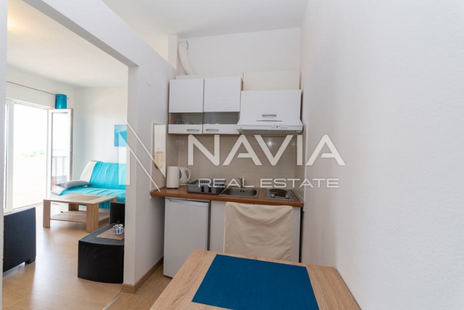 Na prvom katu nalaze se dva odvojena stana. Prvi, površine 140 m², sadrži dvije spavaće sobe, kupaonicu s hidromasažnom kadom, dodatni WC, veliki dnevni boravak spojen s kuhinjom i blagovaonicom, te prostranu lođu od 60 m² s panoramskim pogledom na more i otoke. U sklopu stana nalaze se i praonica rublja, velika ostava te ljetna i zimska kuhinja s izlazom na terasu. Drugi stan na istoj etaži površine je 42 m² i sastoji se od jedne spavaće sobe, kuhinje s blagovaonicom i velikog kupatila, a ispred njega nalazi se velika terasa s pogledom na more.