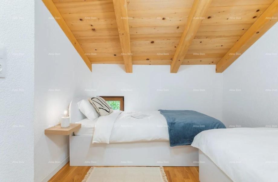 Stara renovirana kamena kuća - sastoji se od 3 odvojena stana. Svaki apartman ima zasebnu terasu i zajednički roštilj u vrtu od cca 200 m2.