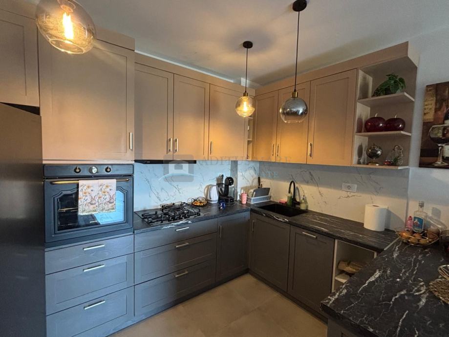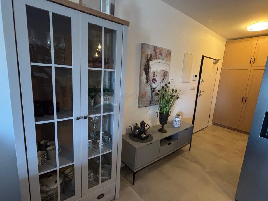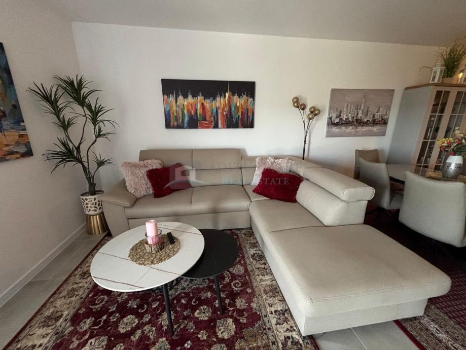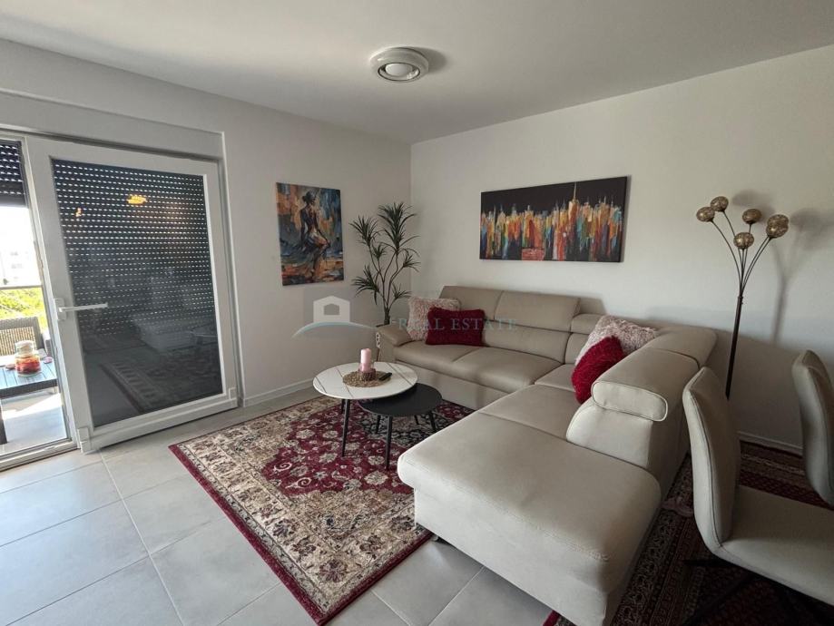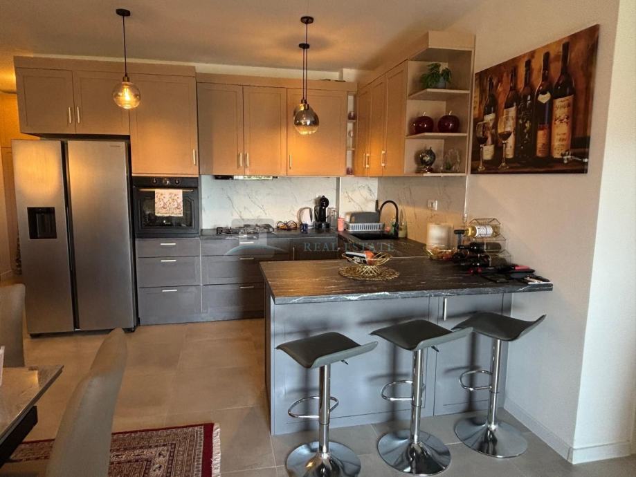 Na prodaju je moderno uređen i potpuno namješten stan površine 86,96 m², smješten u prizemlju novoizgrađene zgrade s ukupno 20 stanova. Zgrada je izgrađena prije dvije godine i nalazi se u mirnom i naseljenom dijelu grada, na samo 1.500 metara udaljenosti od mora.