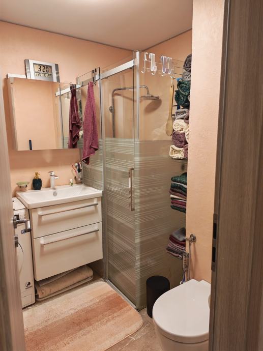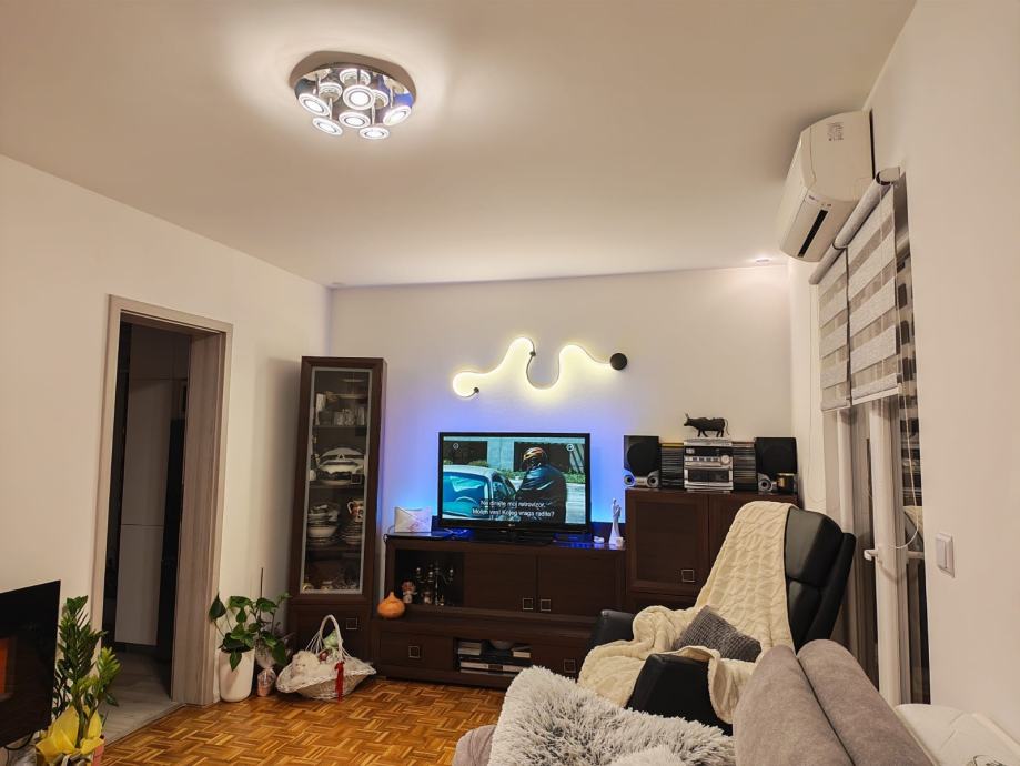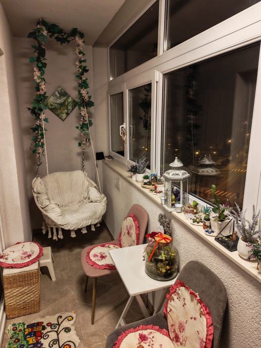 Stan je kompletno uređen u pogledu novih instalacija, izolacije stropa i poda, zatvorene terase sa električnim roletetama i novim namještajem. Grijanje se odvija putem električnih instalacija, klima uređaja, uz ugrađene plinske instalacije.