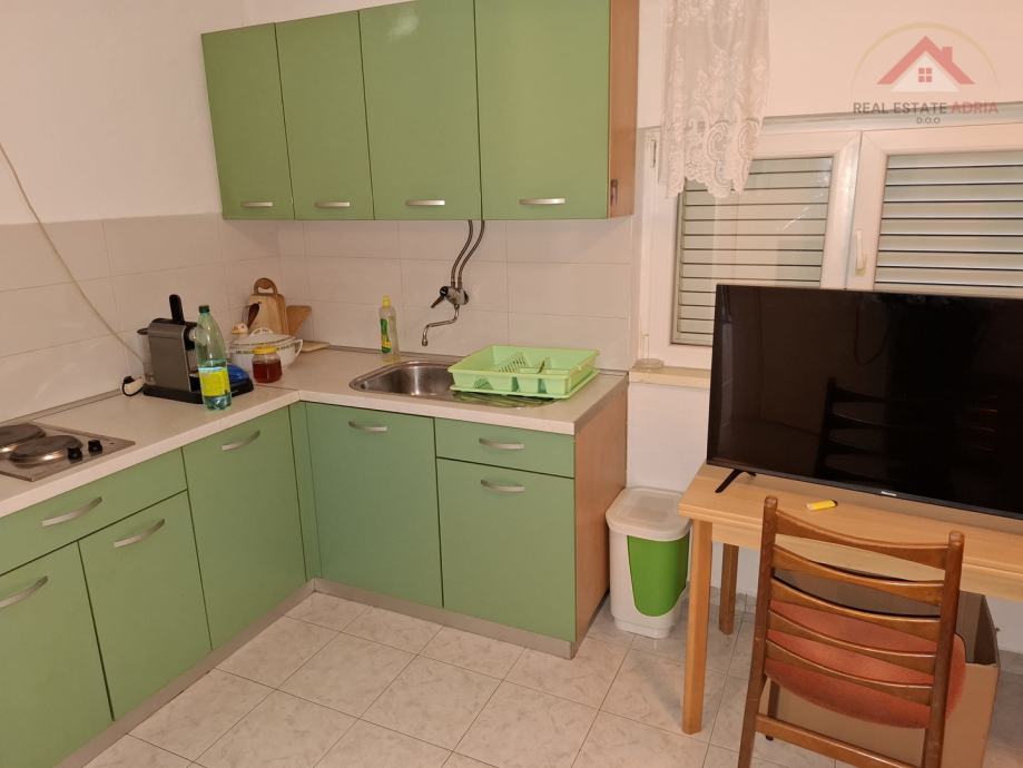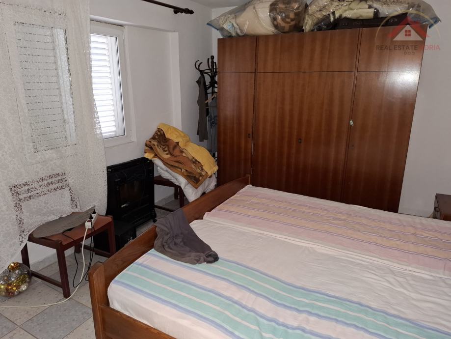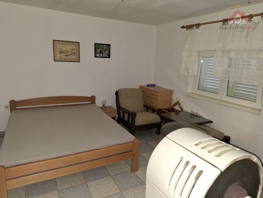 Prodaje se kuća u Biogradu na Moru izgrađena na parceli od 500 m2. Od toga kuća je tlocrtno 84 m2, sastoji se od prizemlja i kata, ukupno 168 m2 stambene površine, pomoćna zgrada od 41 m2 i lijepo veliko prostrano dvorište sa maslinama i vrtom od 375 m2. Sve održavano i useljivo. Kuća je od plaže udaljena 300 m, a od rive i centra grada 150 m. Prizemlje je dvosobni apartman, kat je također dvosobni apartman. Pomoćna zgrada kao ljetna kuhinja je 41 m2 površine. Stanovi se mogu zasebno koristiti, jer svaki ima zasebni ulaz. Kuća je djelomično renovirana prethodnih godina, useljiva je. Vlasništvo uredno i bez tereta. Prodaje se namještena. Cijena nekretnine je FIKSNO 400.000,00 €.