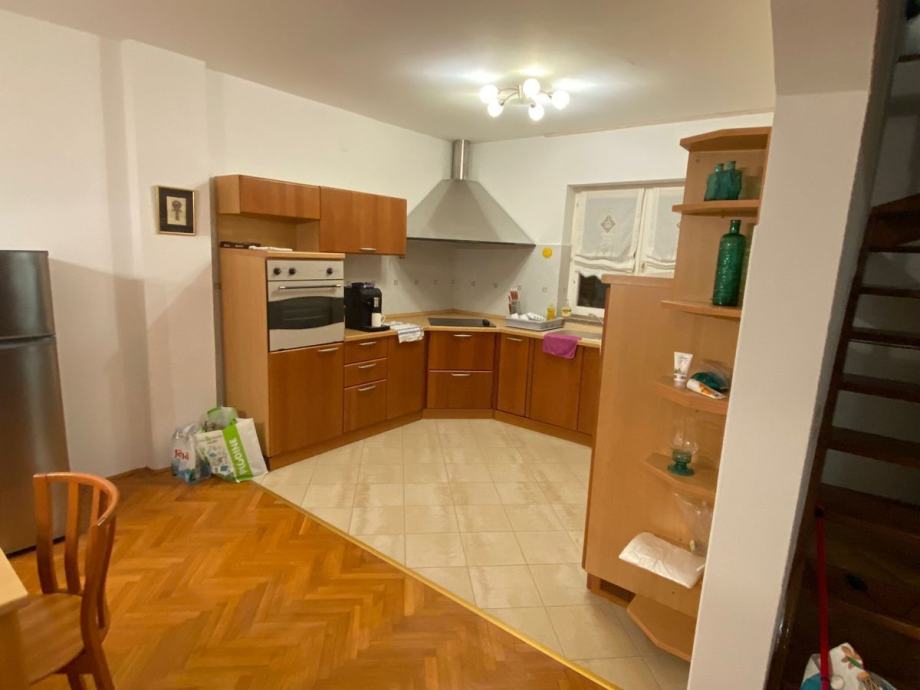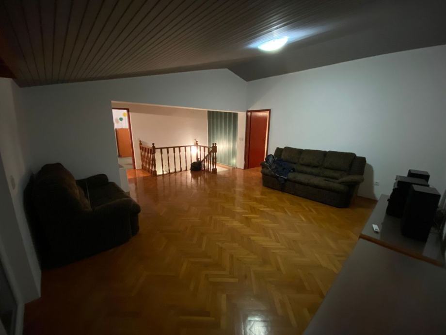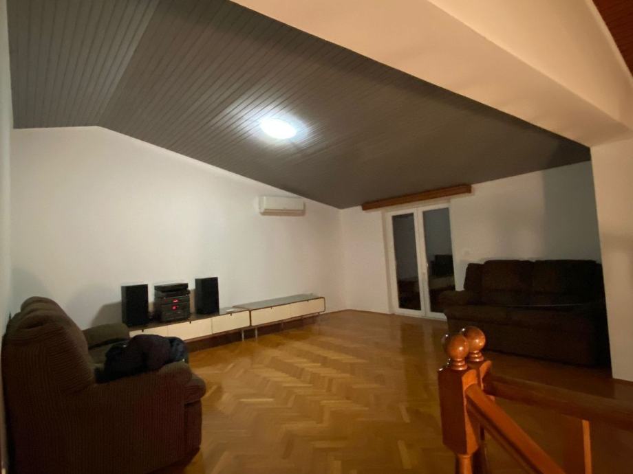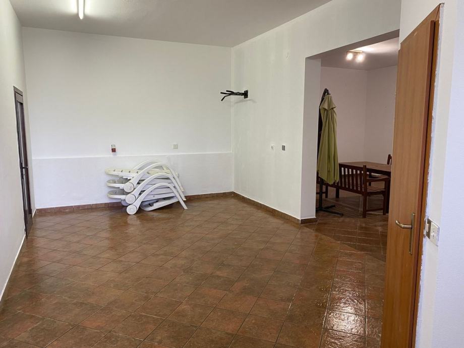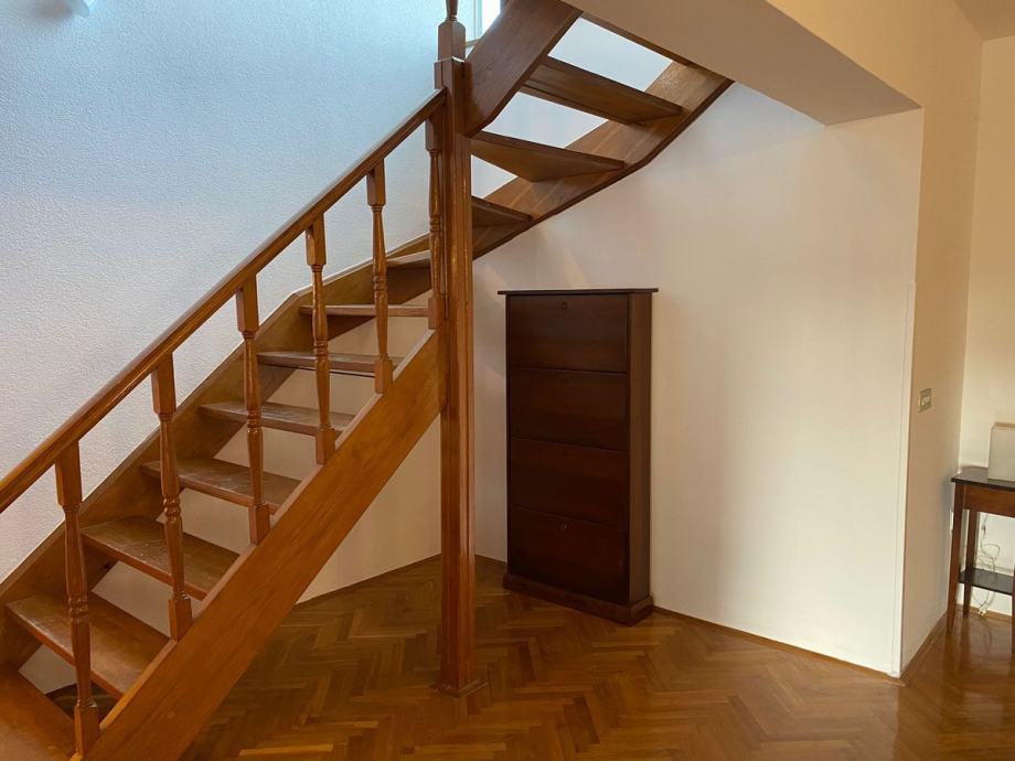 U prizemlju se nalazi natkriveni prostor s roštiljem, konoba, spremište, WC, prostor za druženje s ljetnom kuhinjom, spremištem, te natkriveni prostor za druženje. Na prvom katu se nalazi velika prostrana kuhinja s blagovaonom, dnevni boravak, spavaća soba, kupaona i natkrivena terasa. Potkrovlje se sastoji od dnevnog boravka, dvije spavaće sobe, kupaone i terasom.