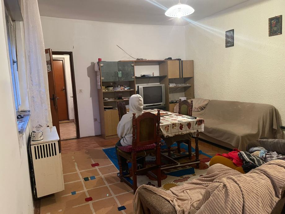 Prvi stan se sastoji od dnevnog boravka, kuhinje, kupaonice i dvije sobe.