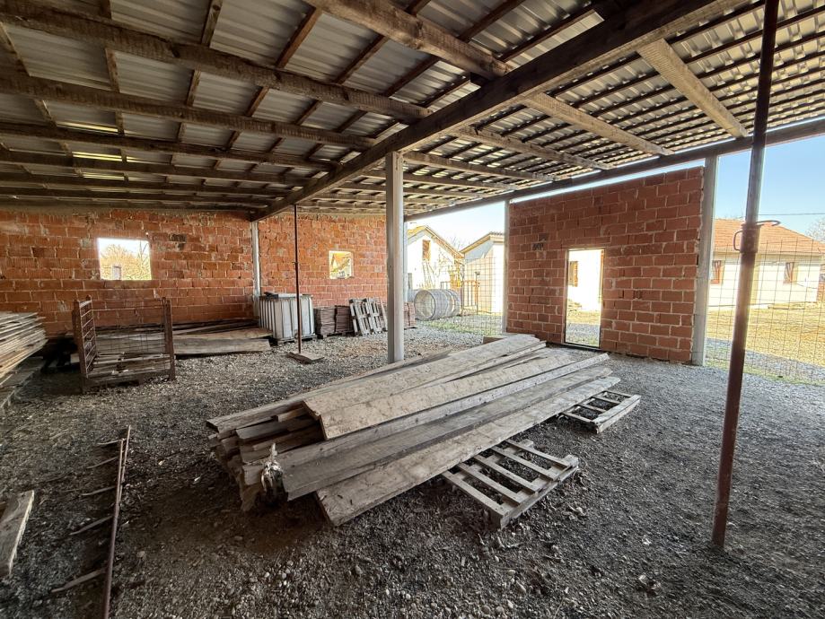 Na prodaju je nekretnina koja se sastoji od parcele površine 617 m2, kuće tlocrtne površine 67 m2, te hale visine 4,1 m i tlocrtne površine 120 m2.