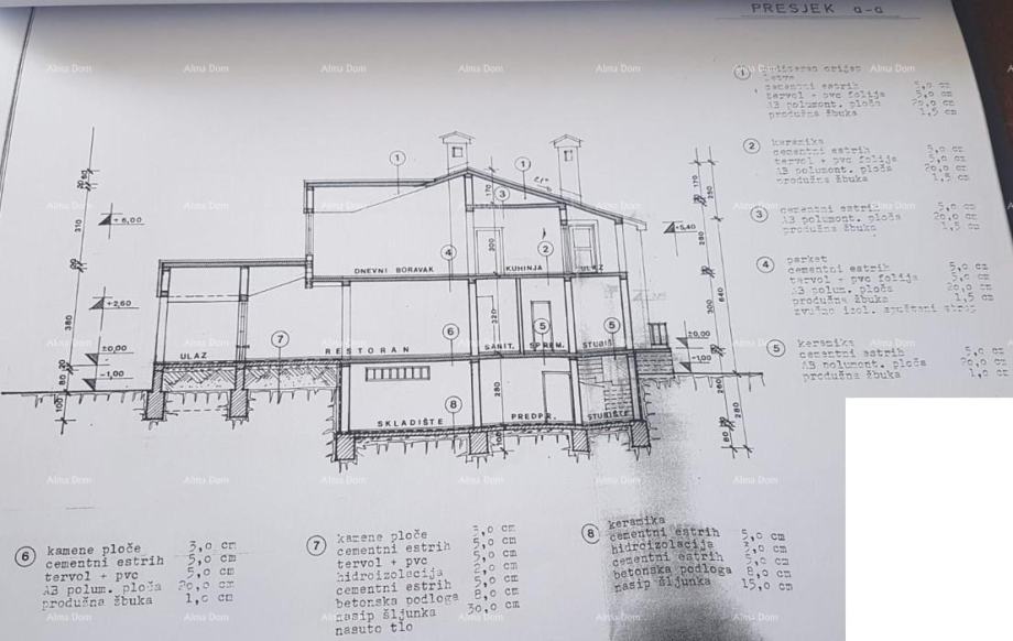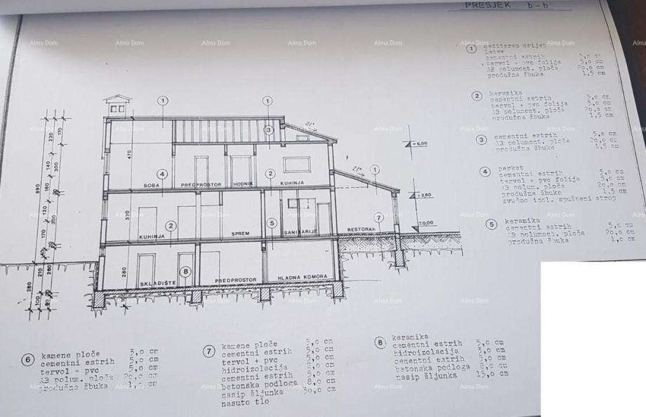U prizemlju je restoran, spremište, kuhinje, sanitarije.