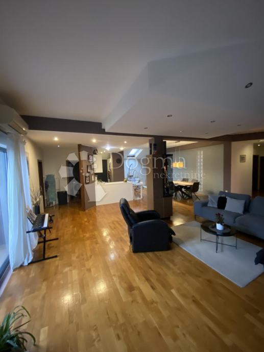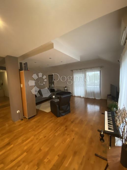 No, prava raskoš ove nekretnine nalazi se na prvom katu, gdje se smjestio prekrasan stan. S 120 kvadratnih metara prostora, ovaj stan će vas oduševiti svojim luksuzom i funkcionalnošću. Uz 2 balkona, pruža predivan pogled na okolicu i obilje svjetlosti. Stan se sastoji od 2 prostrane spavaće sobe, 1 moderno uređene kupaonice s WC-om te unutarnjeg stubišta koje omogućuje lagan pristup oba kata.