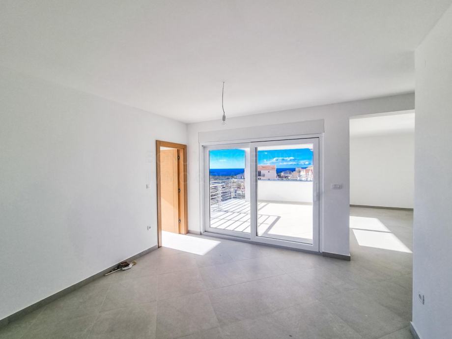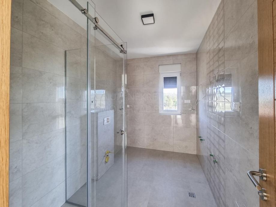 Prodaje se lijepi apartman u novogradnji, okolica Primoštena. Apartman se nalazi u zgradi sa svega šest stanova te dva ulaza. Sam apartman se nalazi na prvom katu zgrade. Sastoji se od dvije spavaće sobe, dvije kupaone, kuhinje s blagovaonom, dnevnog boravka te lijepe terase i balkona. Sam apartman ima 70.90 m2 te terasa ima 17.33 m2 te balkon imaju 2.61 m2. Apartmanu pripada i jedno parkirno mjesto te spremište u podrumu zgrade. Apartman je kvalitetno opremljen( klima, električno podno grijanje u kupaoni, električni podizači roleta te kvalitetna stolarija..). Odlična i kvalitetna nekretnina na mirnoj lokaciji. Također ima prekrasan pogled na more.