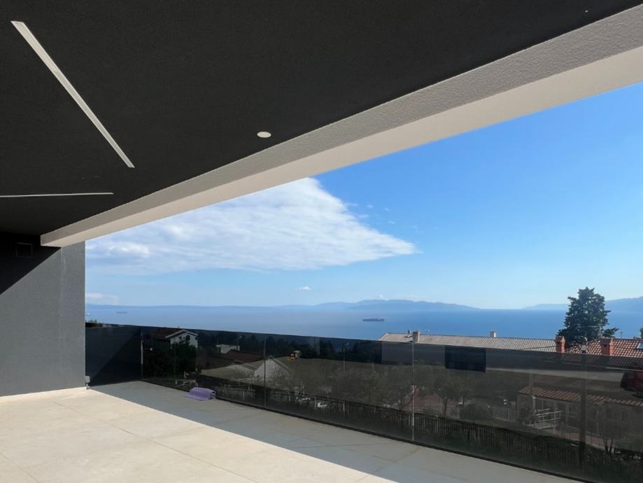 Lokacija : mirna rezidencijalna zona, 2 min od autoputa i 10 min od Opatije, s prekrasnim pogledom na more.
