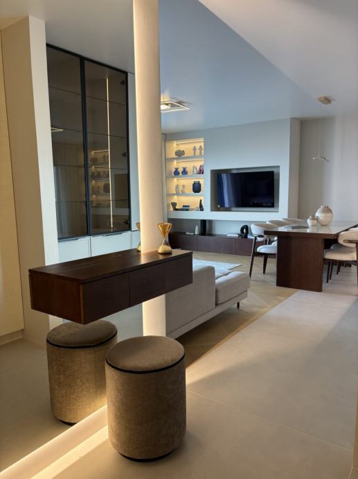 Luksuzni stan u novogradnji A+ kvaliteta, u zgradi samo tri stana, sa ukupno 125m2 površine na jednoj od najmirnijih i najtraženijih lakacije u Rijeci. Stan je kompletno nov i neuseljivan, s privatnim dvorištem i vrhunskom opremom, idealan za život ili luksuzni najam.
