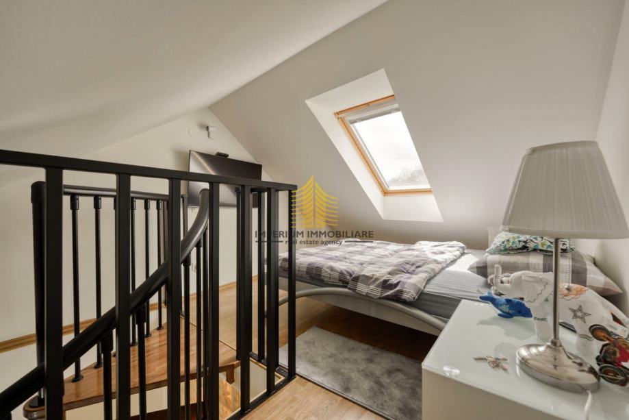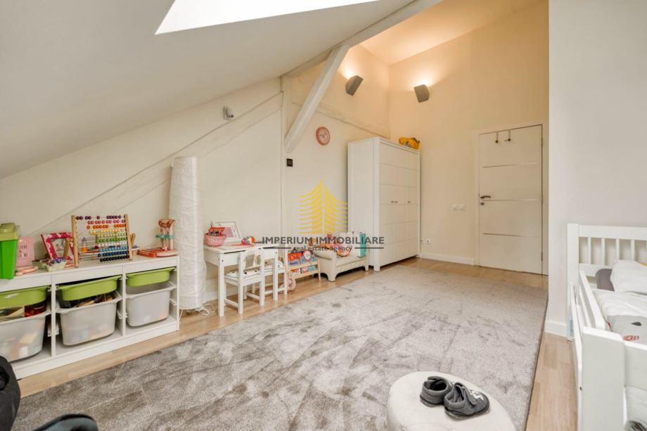 Stan je u potpunosti dizajnerski uređen, s pažljivo biranim materijalima i vrhunskim namještajem. Prostire se na više od 230 m2 i sastoji se od: