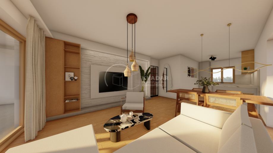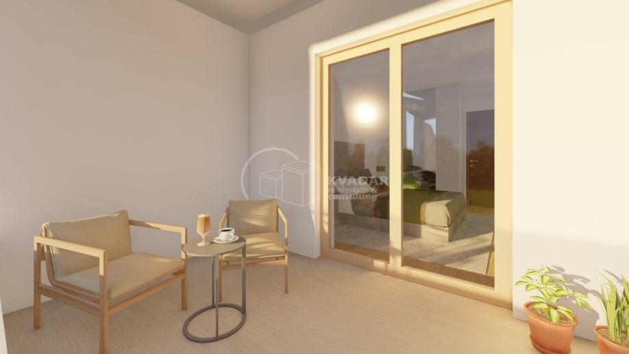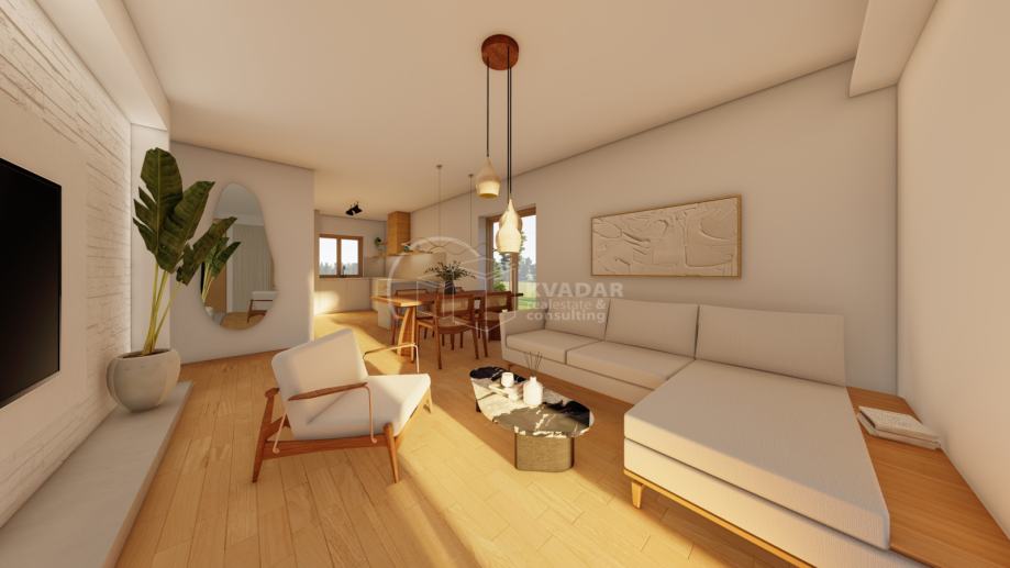 Stan će biti opremljen keramikom velikog formata prve klase, te troslojno lakiranim parketom pogodnim za podno grijanje.