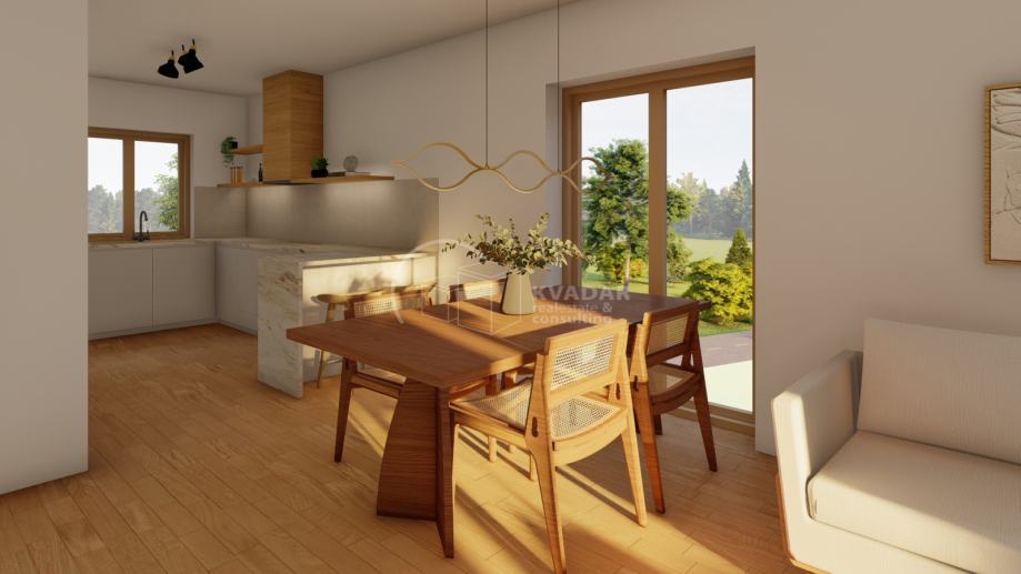 PVC stolarija s profilima od 7 komora (orah smeđa boja) bit će postavljena s ojačanjima na većim otvorima, dok će klizne stijene biti izvedene kao podizno-klizne, što osigurava veću kvalitetu i dugovječnost.