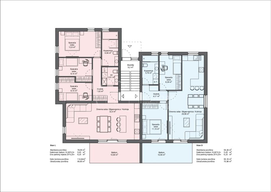 Stan obračunske površine 70,98m2 (neto korisne površine 95,18 m2).