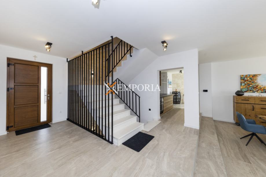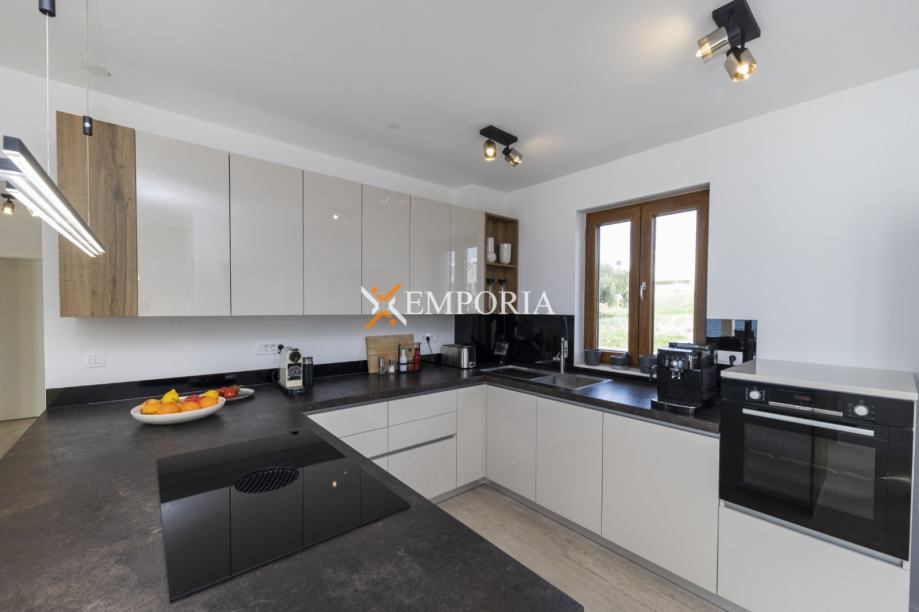 Godina izgradnje je 2022. Gradnja kuće izvršena je ciglenim termo blokom i kamenom oblogom. Toplinska izolacija fasade izvedena je s 5 cm Styrodur-a. Prozori su od PVC materijala s električnim roletama, troslojnim staklom i komarnicima. Podne obloge su parket i pločice. U cijeloj kući je električno podno grijanje putem dizalica topline. Sve sobe su klimatizirane. Osim toga, u kući se također nalazi kamin.