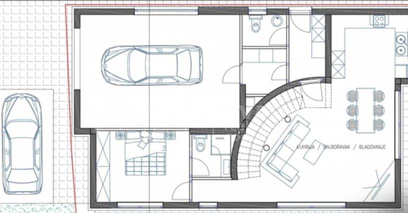 Garaža površine 35 m2 + dodatna parkirna mjesta.