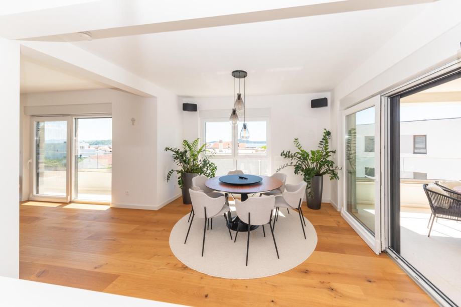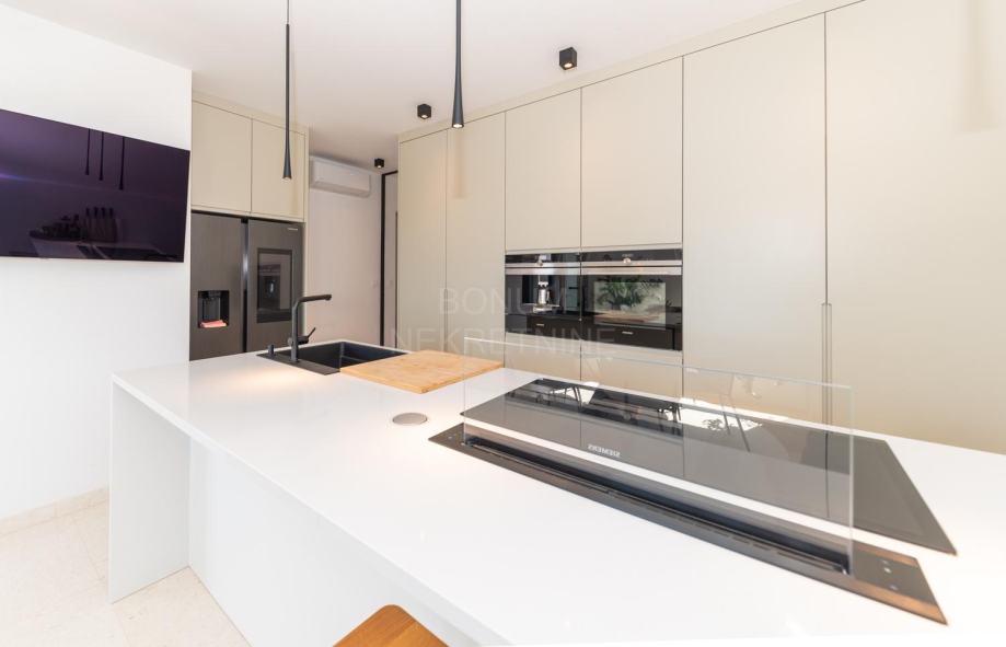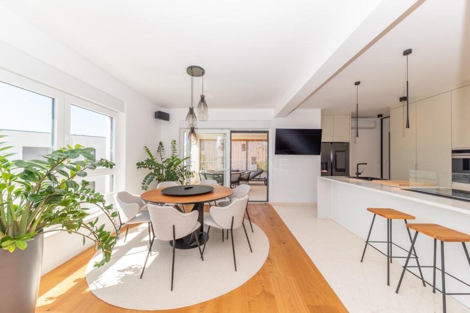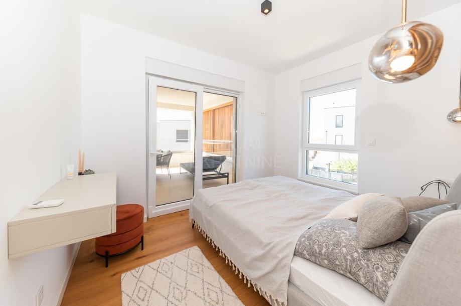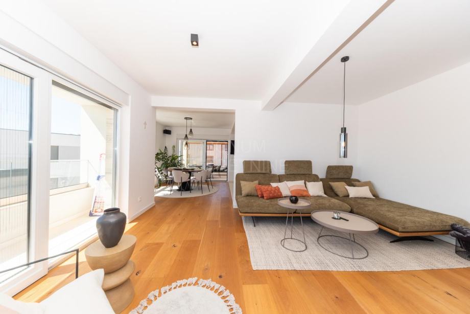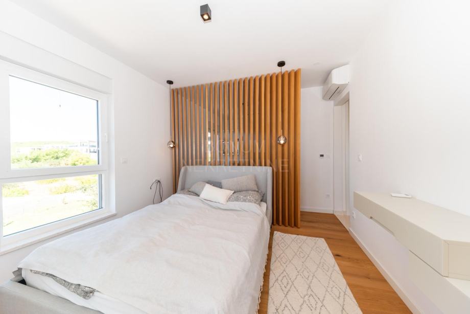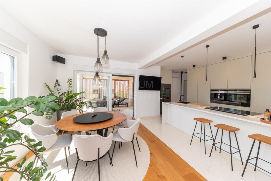 Prodaje se luksuzan apartman u Vodicama, stambena jedinica smještena na prvom katu manje zgrade s ukupno tri stana. Stan ima ukupnu podnu površinu od 109,83 m² i sastoji se od dva hodnika, spremišta, dnevnog boravka, kuhinje s blagovaonicom, četiri spavaće sobe i dvije kupaonice. Prostor je osmišljen tako da pruža maksimalnu udobnost i funkcionalnost za obiteljski život, a istovremeno je izvrsna investicija za turistički najam.
