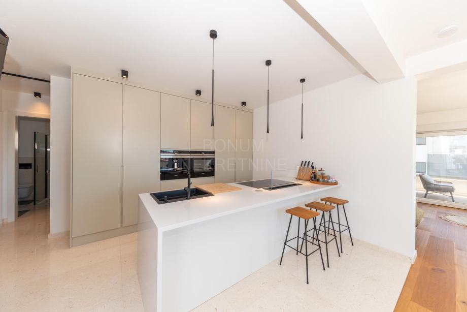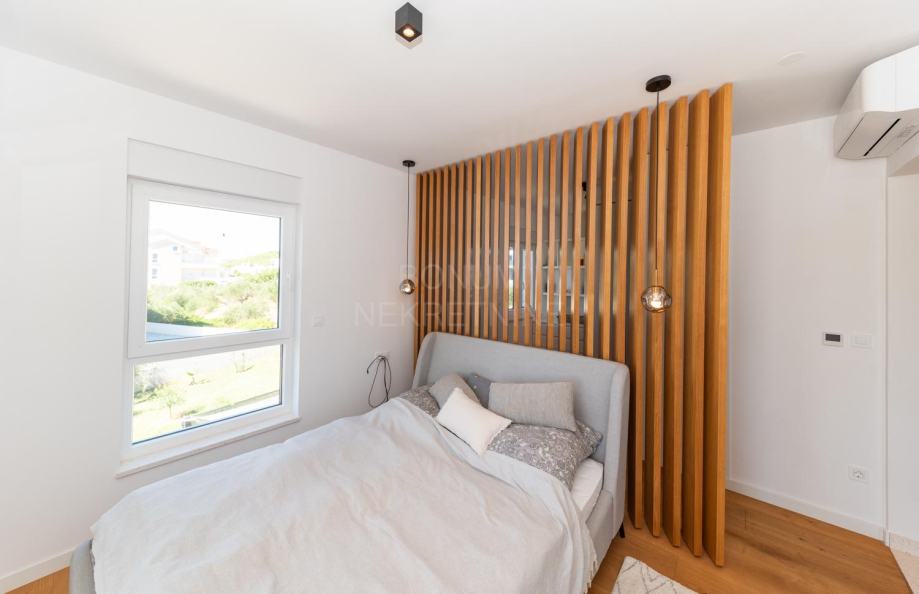 Stan je luksuzno namješten, odmah useljiv, a zgrada nudi mogućnost ugradnje lifta. Udaljen je svega 500 metara od mora i plaža, što ga čini izuzetno atraktivnim za svakodnevni život ili kao apartman za odmor.
