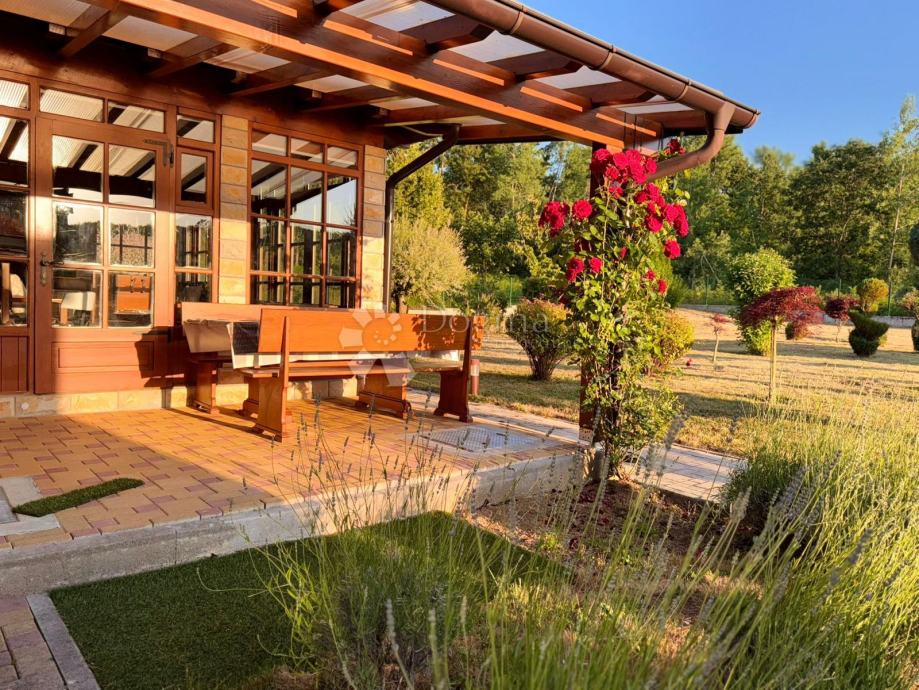 Na posjedu se nalazi ekskluzivna drvena kuća sa 4 postojeća objekta ,garaže sa 2 parkirna mjesta ,ljetne kuhinje sa roštiljiom (komplet namješteno), te tradicionalne kuće sa ognjištem ,izrađena od prirodnih materijala, kombinacijom tradicionalne gradnje i modernih detalja.