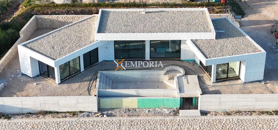 A beautiful villa with a pool is for sale in Posedarje. It is a modern new building offering a stunning panoramic view of the sea.