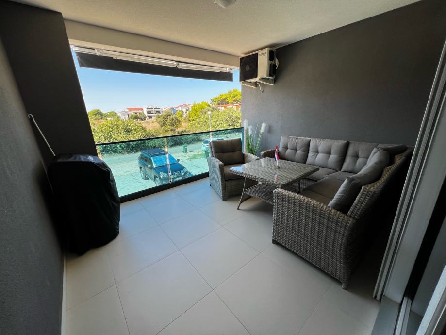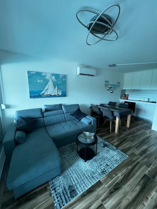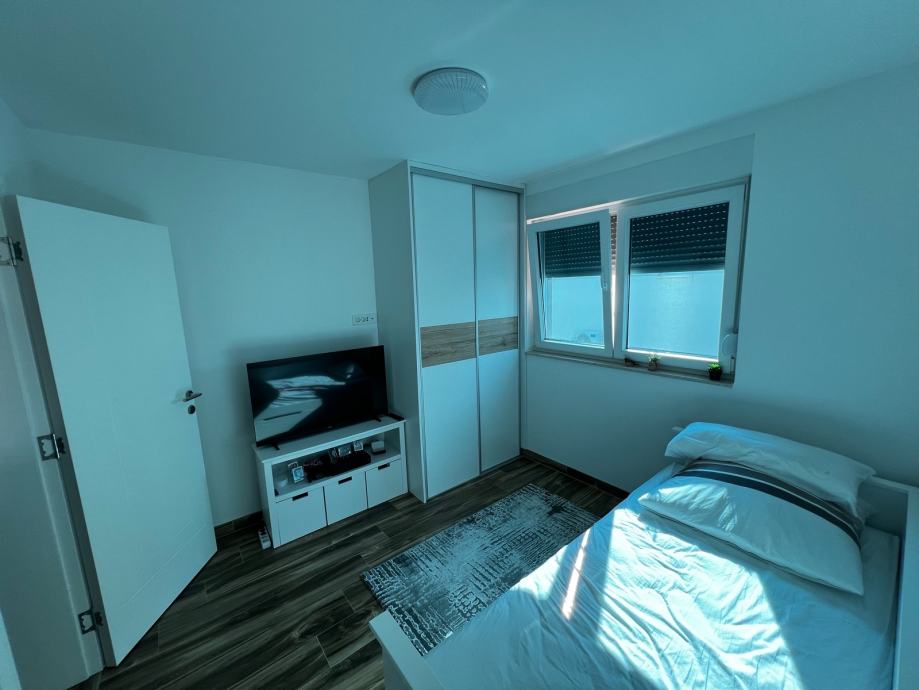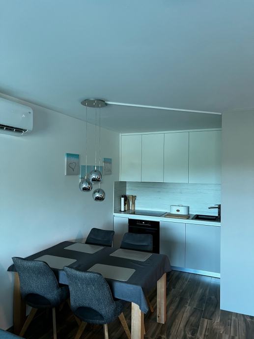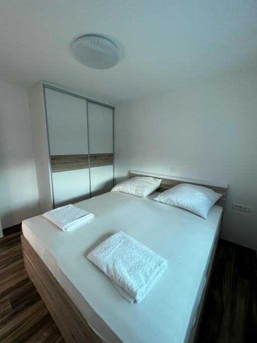 The flat/apartment is located in a quiet part of Vir. It is 330 meters away from the sea and the beach. Other facilities such as a shop and a bakery are located 200 m from the apartment. The building was built in 2021 and has energy certificate A. The apartment is sold furnished (kitchen with appliances, built-in wardrobes in each bedroom, beds with mattresses, washing machine, dining table with chairs, corner furniture, TV chest and garden furniture on the terrace). There are a total of 5 apartments in the building. The apartment was bought in 2022 and was used very little. Mainly for summer vacation. It was not rented.