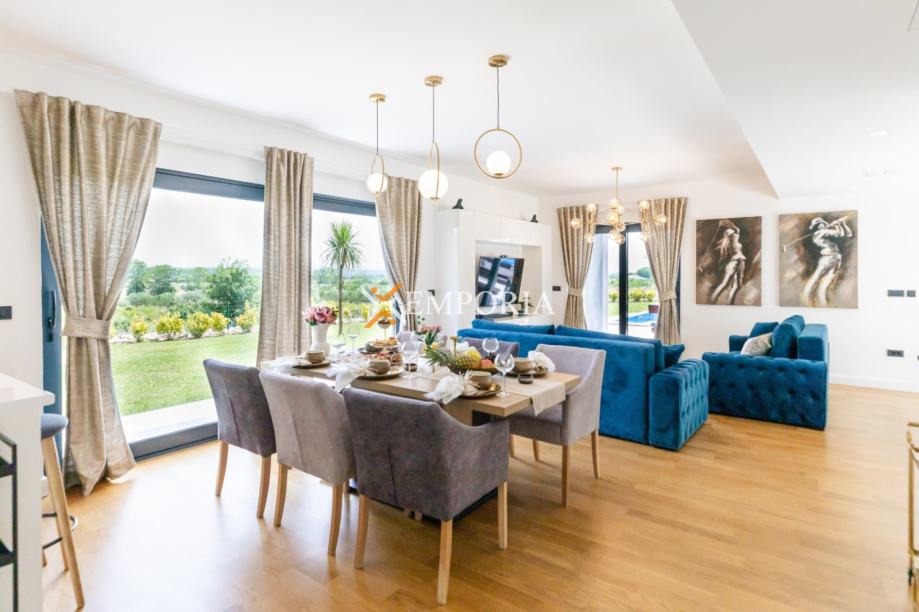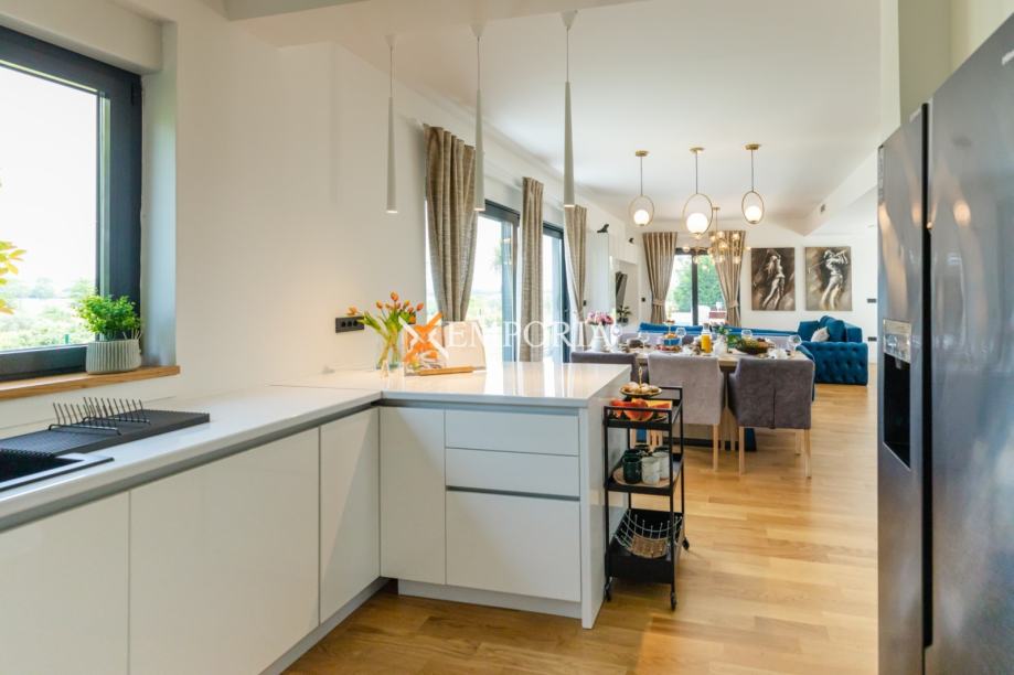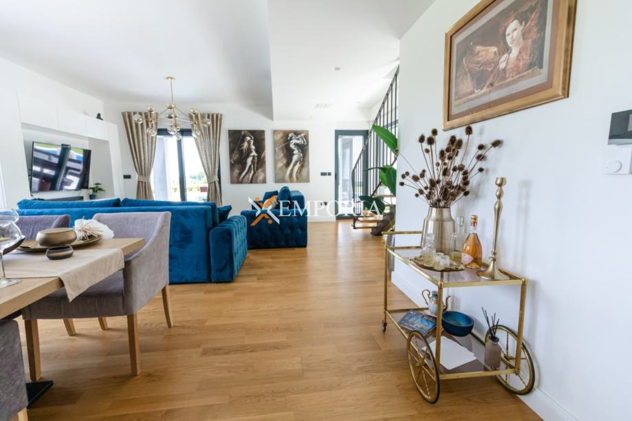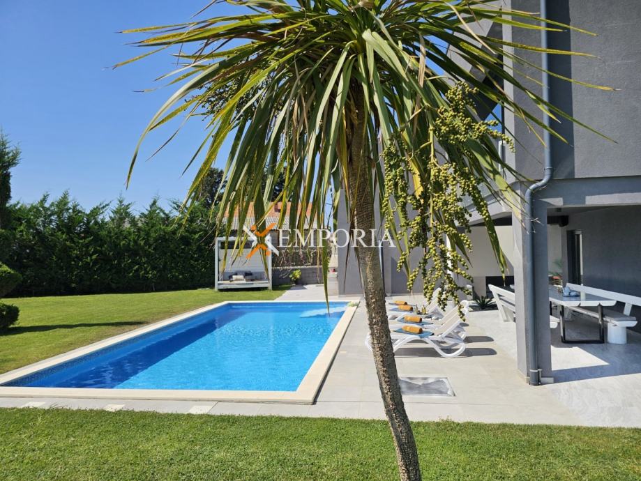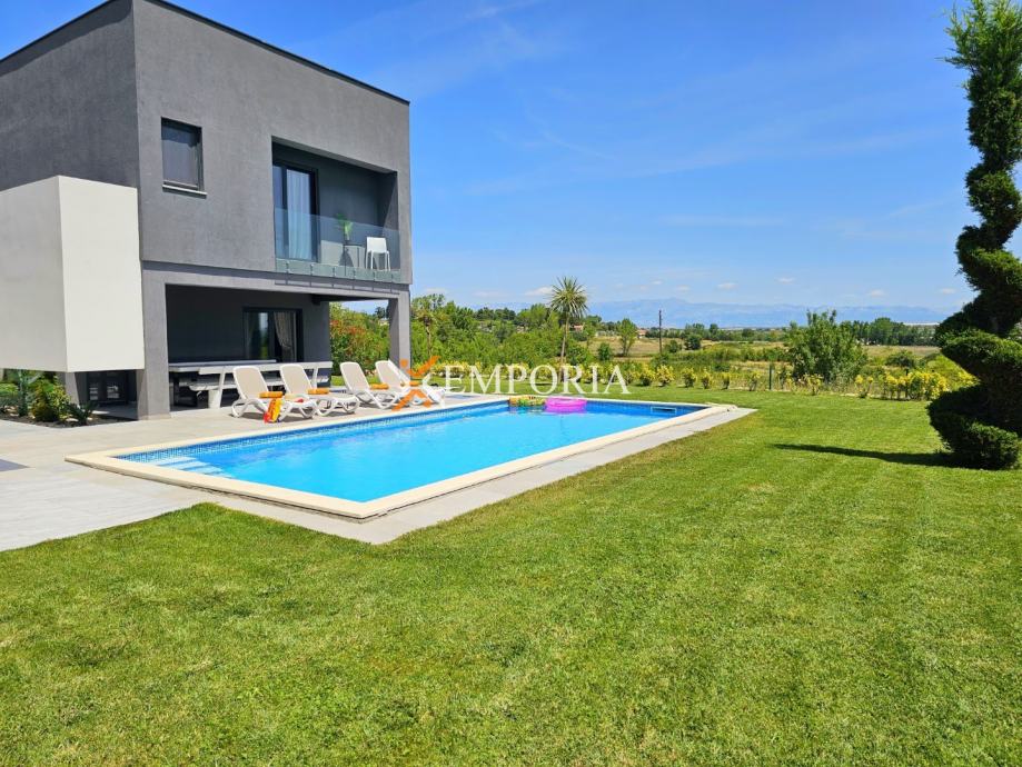 Ovo mjesto bogato prirodnim ljepotama nalazi se na izvrsnom geoprometnom položaju iz nekoliko razloga. Zadarska zračna luka Zemunik povezana je s mnoštvom europskih gradova, osobito za vrijeme ljetne turističke sezone. S druge strane, nadomak ruke je i autocesta A1 koja je od centra mjesta udaljena nepunih 5 km sa svojom naplatnom postajom ‘Zadar – istok’. Zbog blizine Zadra željezničke i autobusne postaje su također dosta blizu, kao i pomorska luka Gaženica.Ostale informacijeUkoliko ste ovu nekretninu vidjeli negdje drugdje po nižoj cijeni, ista cijena vrijedi i kod nas!https://www.emporia-nekretnine.com/property/kuca-h652-zemunik-donji/____________________Zum Verkauf steht ein wunderschönes Haus mit Swimmingpool. Es handelt sich um einen modernen Neubau in Zemunik Donji.