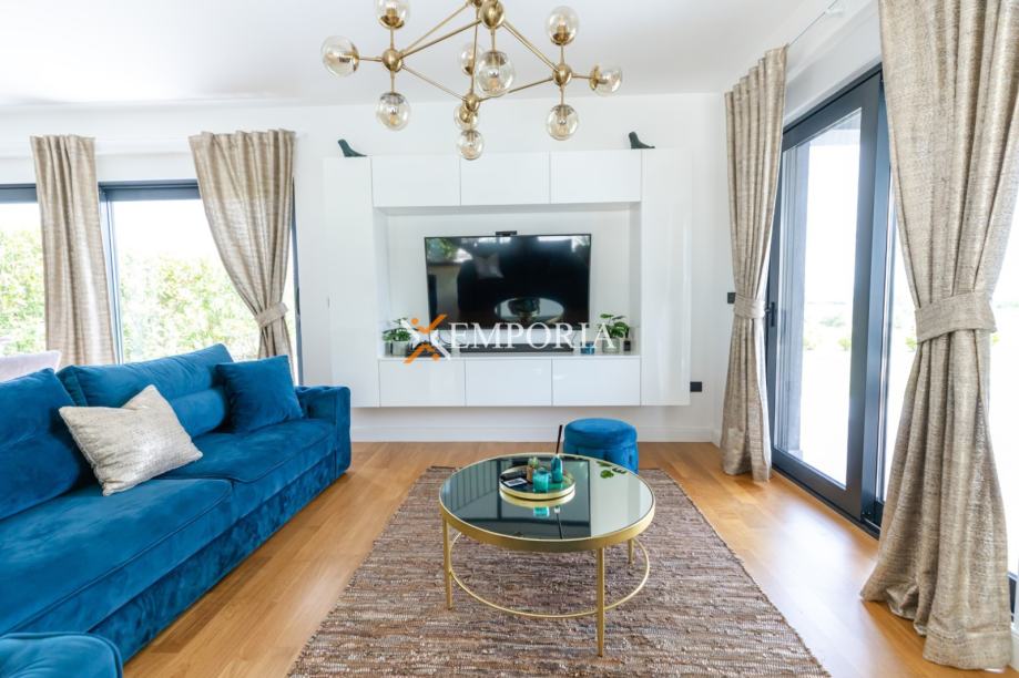 The house is located in a quiet location, in the center of Zemunik Donji, near all amenities. It is 8.2 km from the sea.EquipmentThe house is for sale fully decorated and furnished. It was built in 2021. The construction of the house was made with a concrete wall with thermal insulation of the facade with 10 cm styrofoam.