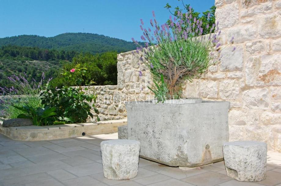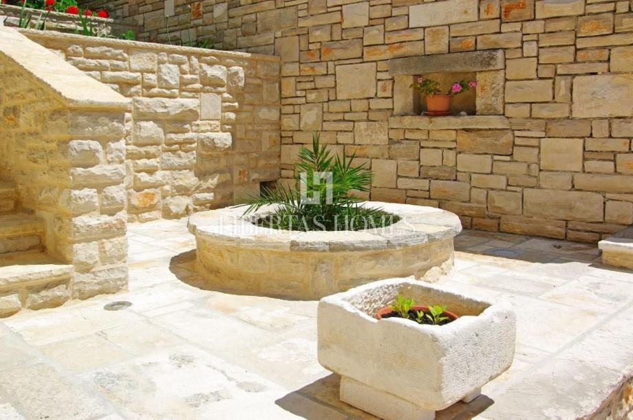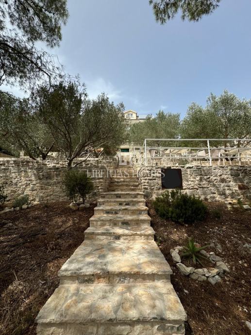 Okoliš hotela uređen je s maslinikom i ukrasnim mediteranskim biljem, čime se stvara ugodna atmosfera. Objekt je trenutno spojen na vlastitu septičku jamu, ali uskoro se očekuje spajanje na gradsku kanalizaciju koja je udaljena 300 metara.