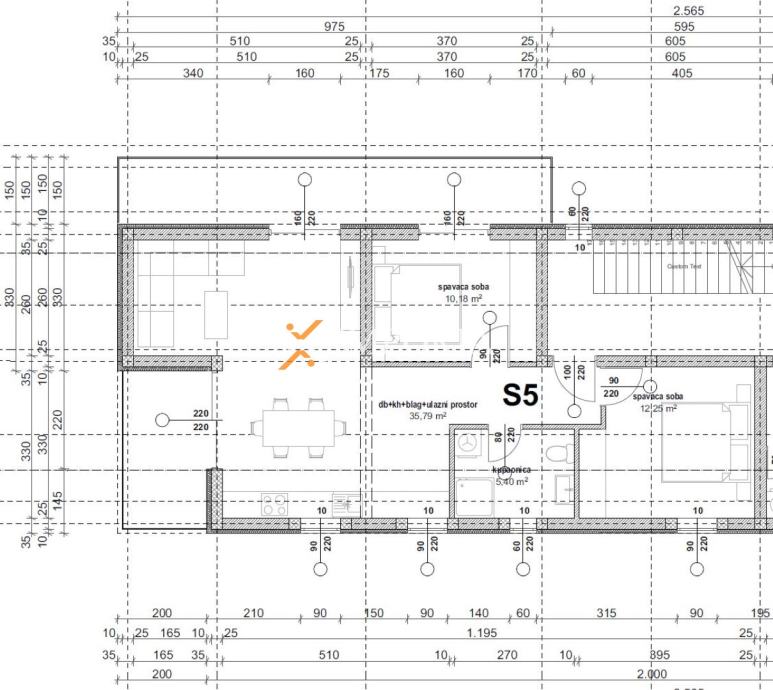 Zgrada je u izgradnji, a dovršetak je planiran za ljeto 2025. godine.OpremaGradnja zgrade vrši se ciglenim termo blokom. Termoizolacija fasade je stiropor debljine 8 cm. Prozori su od PVC materijala s troslojnim staklom, roletama i komarnicima. Podne obloge su pločice i laminat. Podno električno grijanje u cijelom stanu. Osim toga, u dnevnom boravku i spavaćim sobama bit će postavljeni klima uređaji. Nadalje, ulazna vrata stana su protuprovalna i protupožarna.