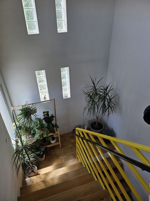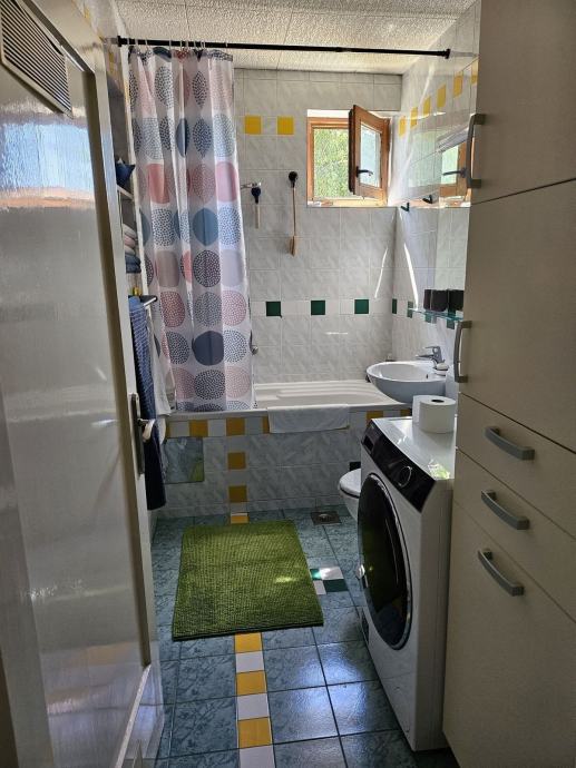 Prodaje se kuća s dva stana i poslovnim prostorom – useljiva, uređena i na izvrsnoj lokaciji!Kuća se nalazi u neposrednoj blizini centra i osnovne škole. 2012. godine bila je adaptacija krovišta i tavana, zamjena instalacija grijanja na katu, komplet bojler i radijatori, u prizemlju servisiran bojler i novi radijatori. Ugrađema klima split Mitsubishi. Zamijenjeni su prozori sa PVC duplim staklom, jedan sa PVC trostrukim staklom.Fasada sa 10 cm EPS izvedena je na sjevernoj i istočnoj strani 2017. godine. Zidovi su sendvič duple cigle, krovište je podaskano, pokriveno zrakopropusnom membranom i pokriveno Creaton crijepom (50.g. garancije od tvornice), tavan je podaskan i izoliran sa 18 cm vune.Dvije garaže, drveno spremište i veliki vanjski prostor za parkiranje na tlakavcima, široki ulaz s pomičnom ogradom. Ograda je nova. Izrađen je boks za psa.Kuća se prodaje s namještajem ili bez, prema dogovoru.Uveden optički internet i plaćeno osiguranje do 6/26.Energetski razred C - površina grijanog prostora 167,57 m2.Ukupno 221,44 m2 neto, bruto 265,72 m2.Okućnica je uređena tlakavcima, terasa i puno zelenila.Prema uporabnoj dozvoli to je zgrada mješovite namjene, stambeno poslovna, 10,10 m x 9,10 m +8,90 m x 5,80 m, visine do vijenca 7,58 mDetalji nekretnine:- Dva stana – stan u prizemlju: predsoblje, kupaonica, kuhinja i soba + stan na katu: predsoblje, dvije sobe, dnevni boravak, kuhinja i kupaonica; imaju zajedničko vanjsko stubište – savršeno za veću obitelji ili za najam i dodatni prihod;- Poslovni prostor – u prizemlju: dvije sobe i toalet – odlično za vlastiti ured ili za najam – povezano s vratima sa stambenim prostorom ali se može koristiti i samostalno jer ima poseban ulaz na sjevernoj strani gdje su garaže i vanjski parking;- Dvije garaže i drveno spremište + podrum– spremište sa krovom od crijepa staro desetak godina i garaže sa krovom od limenih ploča (garaže i podrum u suterenu mogu se adaptirati radi prenamjene u stambeni prostor).Prednosti:- Blizina važnih sadržaja: centar, škola, liječnik, trgovine- Mogućnost kombiniranja stambenog i poslovnog prostora ili iznajmljivanja. Vlasništvo čisto! Sve ostale informacije na broj telefona 098242279 Kruno