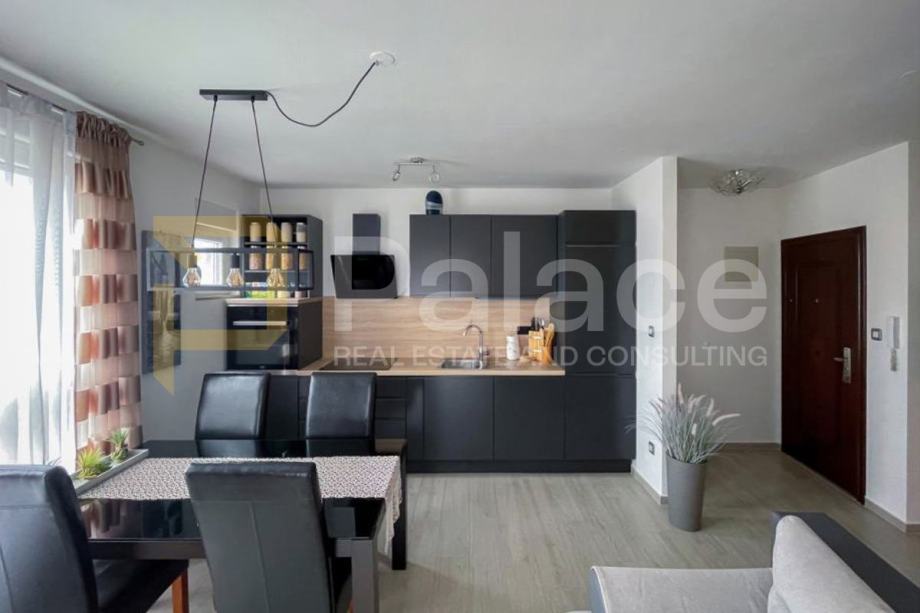 Stan je izuzetno funkcionalan, osvijetljen prirodnim svjetlom, s visokim standardima uređenja i u potpunosti prilagođen suvremenom načinu života. Zgrada se nalazi u mirnom i sigurnom kvartu, okružena zelenilom i u blizini svih važnih sadržaja poput trgovina, škola, vrtića i javnog prijevoza, što ga čini idealnim izborom za sve generacije. Za izgradnju korišteni su visokokvalitetni materijali, stubište zgrade biti će u granitnom kamenu.