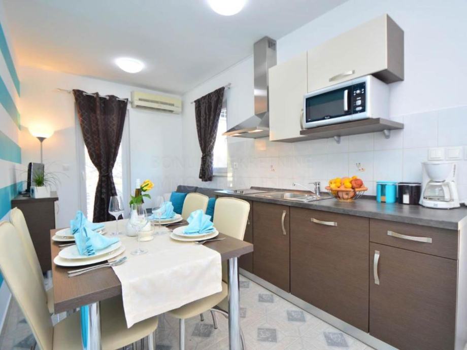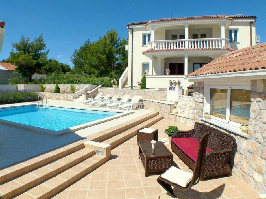 Prodaje se prostrana apartmanska kuća u mirnoj uvali u blizini Tribunja. Kuća se sastoji od podruma, prizemlja, kata i potkrovlja. Kuća ima veliku lijepo uređenu okućnicu na kojoj su smješteni: bazen, natkrivena sjenica, ljetna kuhinja, roštilj te parking za više automobila. Na mirnoj je lokaciji, 250 m do mora. U podrumu se nalazi sauna, praonica, kotlovnica, tri spavaće sobe te spremište. Podrum (160 m2) pripada dvosobnom stanu koji se nalazi u prizemlju te koji ima 100 m2. Vanjskim stubištem se ide do kata i potkrovlja gdje se nalazi još šest apartmana( jednosobnih ili dvosobnih) koji se koriste za turističku rentu. Odlična nekretnina s uhodanim poslom turističkog iznajmljivanja.