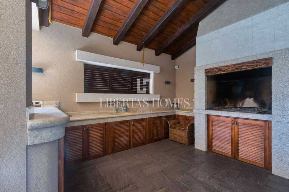 Unutar prostrane okućnice vile, uz pažljivo uređen vrt, zasađene su maline i raznovrsne voćke, stvarajući idilično okruženje koje dodatno naglašava prirodnu ljepotu ove nekretnine.