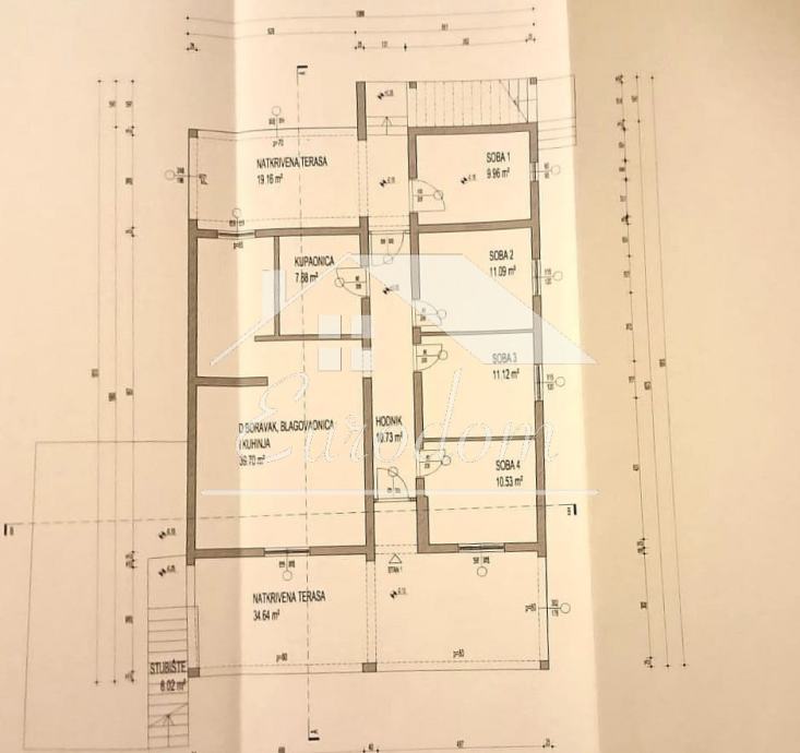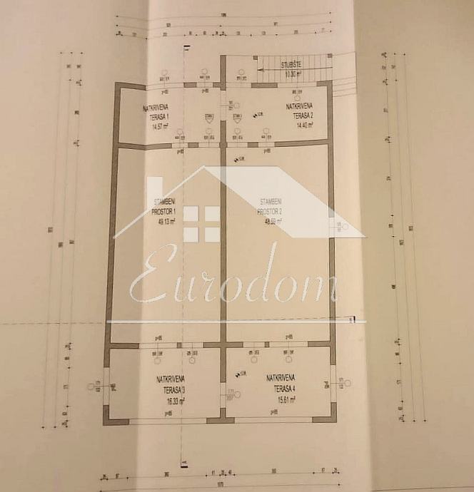• Prvi kat: 153,81 m² (2 stambene jedinice, 4 natkrivene terase)