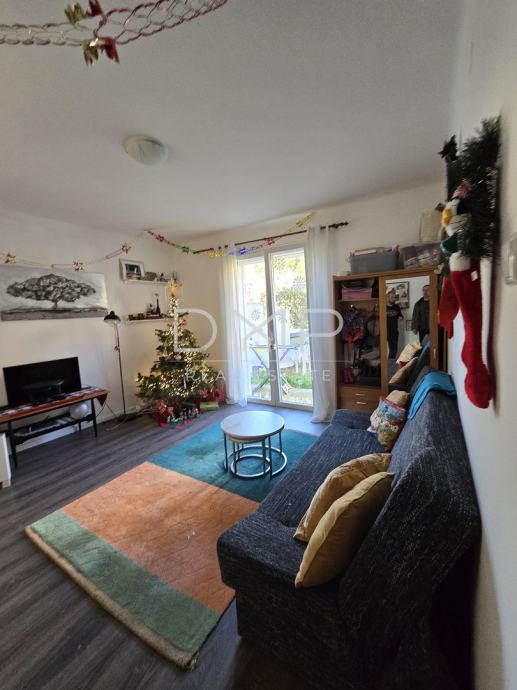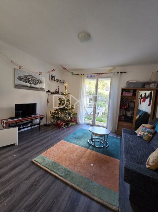 Stan se nalazi u prizemlju manje stambene zgrade. Pripada mu i terasa te vrt ispred i oko stana.