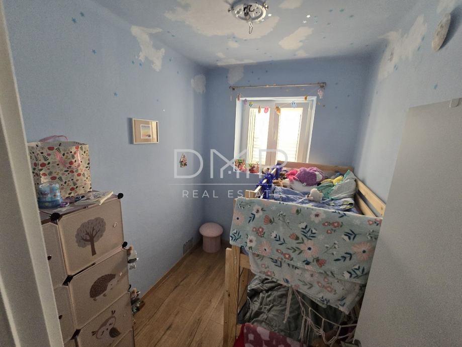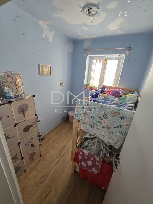 Stan se sastoji od ulaznog hodnika sa ostavom, kuhinje s s trpezarijom, dječije sobe, kupaonice, spavaće sobe te dnevnog boravka.