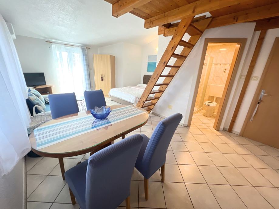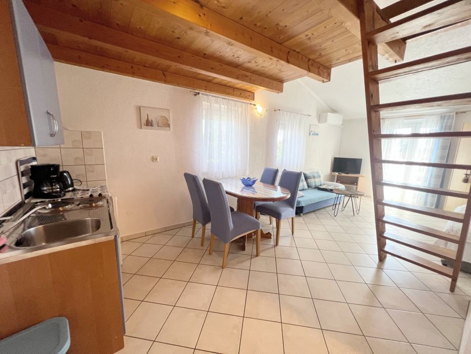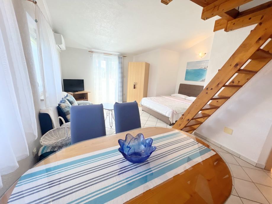 U tom slikovitom okruženju nalazi se ovaj potpuno opremljen stan ukupne površine 30,05 m², s dodatnom galerijom smješten je na drugom katu manje stambene zgrade. Stan je spreman za useljenje, što ga čini izvrsnom prilikom za vlastiti dom, vikendicu ili turističku investiciju.