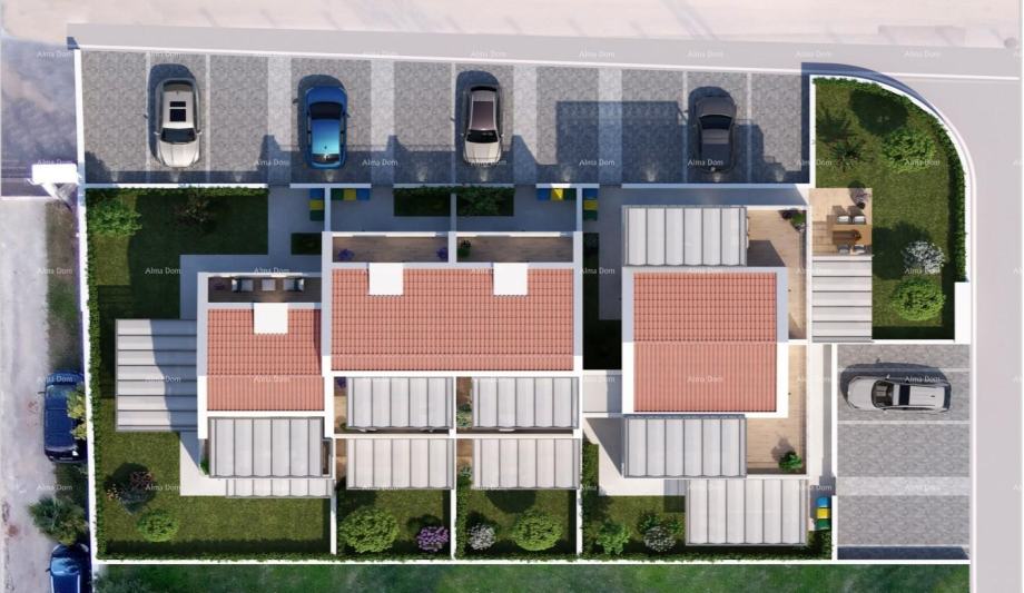 Stan je dio kuća u nizu gdje svaki stan ima svoj vlastiti ulaz, vrt i parking.