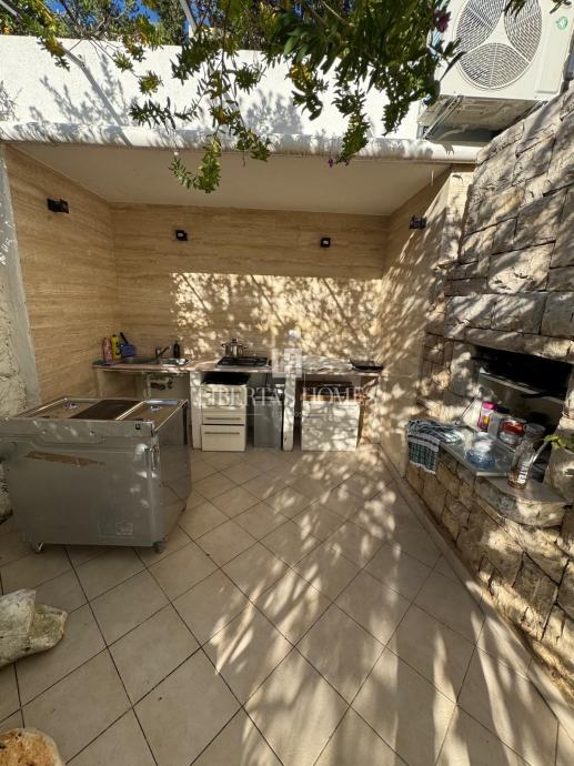 Nekretnina je spojena na vodovod i električnu mrežu te koristi septičku jamu. Stan se prodaje namješten. Trenutno raspolaže vanjskom, natkrivenom ljetnom kuhinjom s roštiljem, dok su instalacije već pripremljene za jednostavno postavljanje unutarnje kuhinje. Kroz zgradu je proveden dimnjak, što omogućuje ugradnju peći u dnevnom boravku, a za grijanje i hlađenje koristi se klima uređaj.