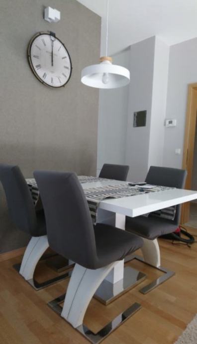Stan je u potpunosti opremljen za komforno stanovanje (s uređajima; perilica suđa i rublja, frižider i ledenica, pećnica i plinska ploča, televizor, klima uređaj...) te s garažom koja je povezana liftom sa stanom.