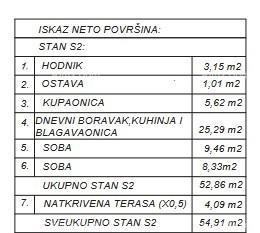 Stan S2, nalazi se na 1.katu stambene zgrade, površine 54,91 m2 .