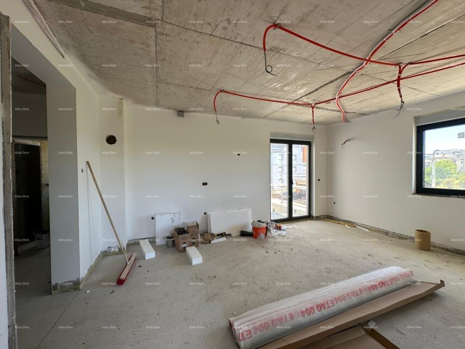 Keramičke pločice će biti u cijelom stanu. Inverter klima jedinice u dnevnom boravku i spavaćoj sobi, u ostalim sobama će biti kompletna intstalacija za priključenje dodatnih klima uređaja. Podno grijanje je provedeno i uključeno u cijenu.